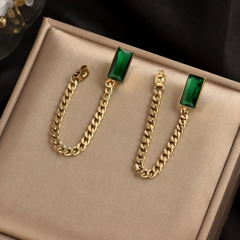 Колье и браслет из нержавеющей стали 316L с зеленым кристаллом и цирконом