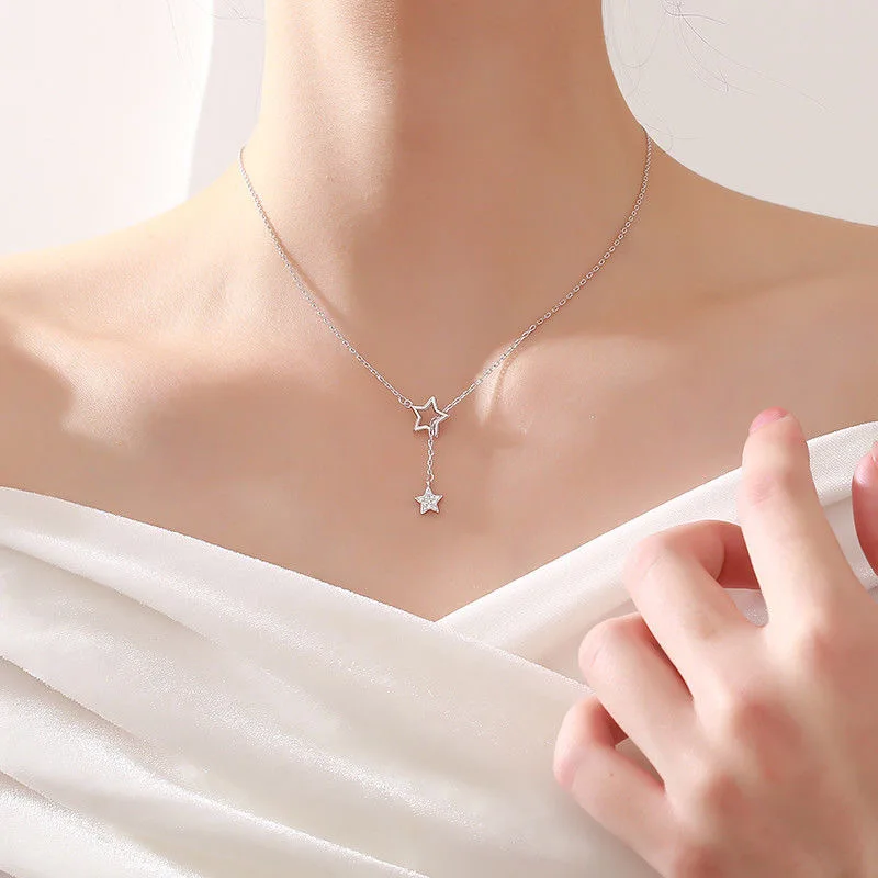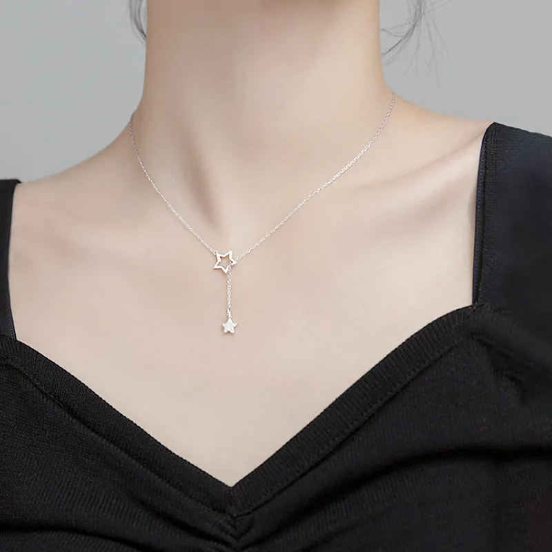 Ожерелье из серебра 925 пробы с блестящими звездами, новинка, простая Женская цепочка до ключиц, аксессуары, ювелирные изделия для женщин, подарок на свадьбу, день рождения