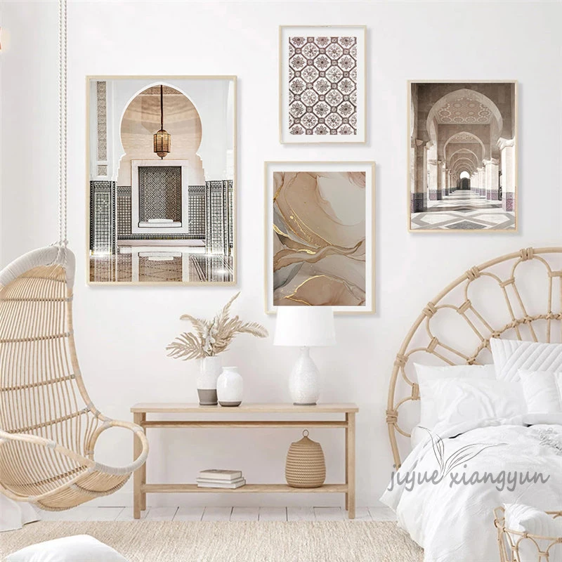 Марокканское историческое здание, холст, живопись, бохо, ретро, настенное искусство, абстрактные, бежевая текстура, постеры, печать, гостиная, украшение для дома