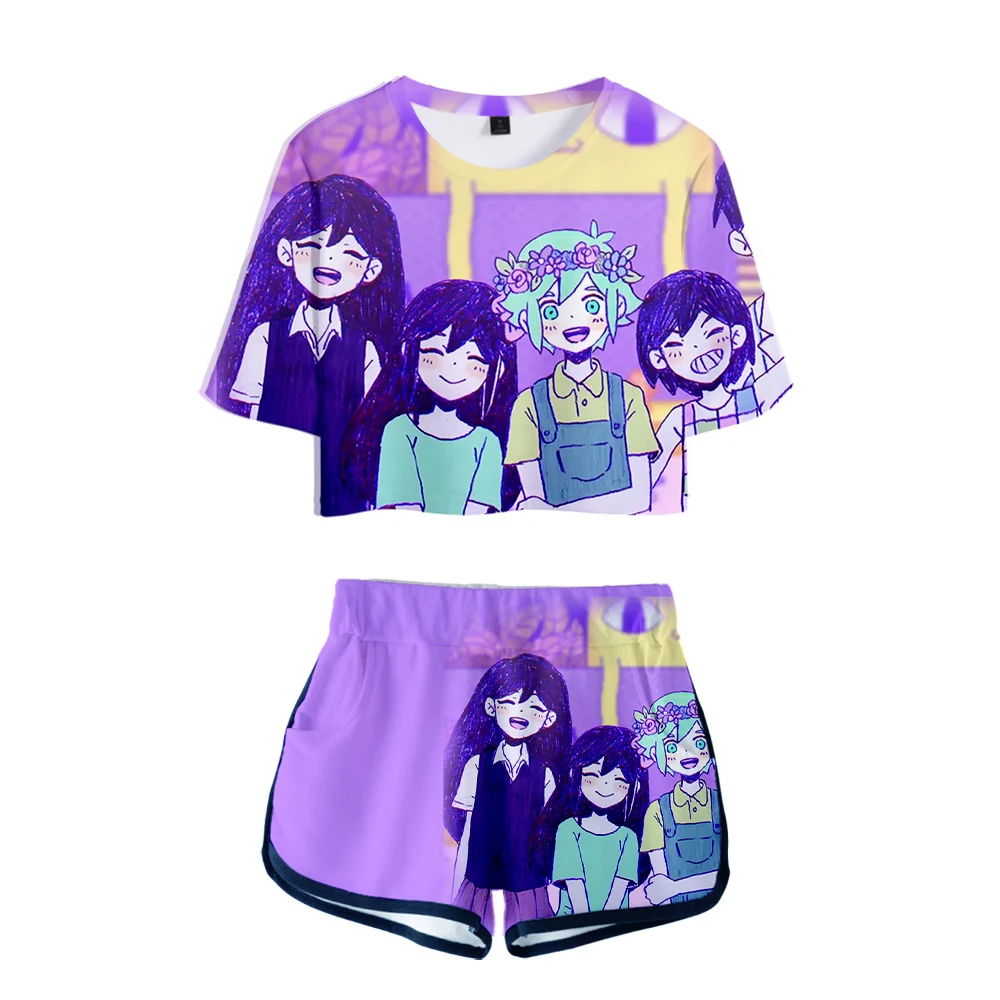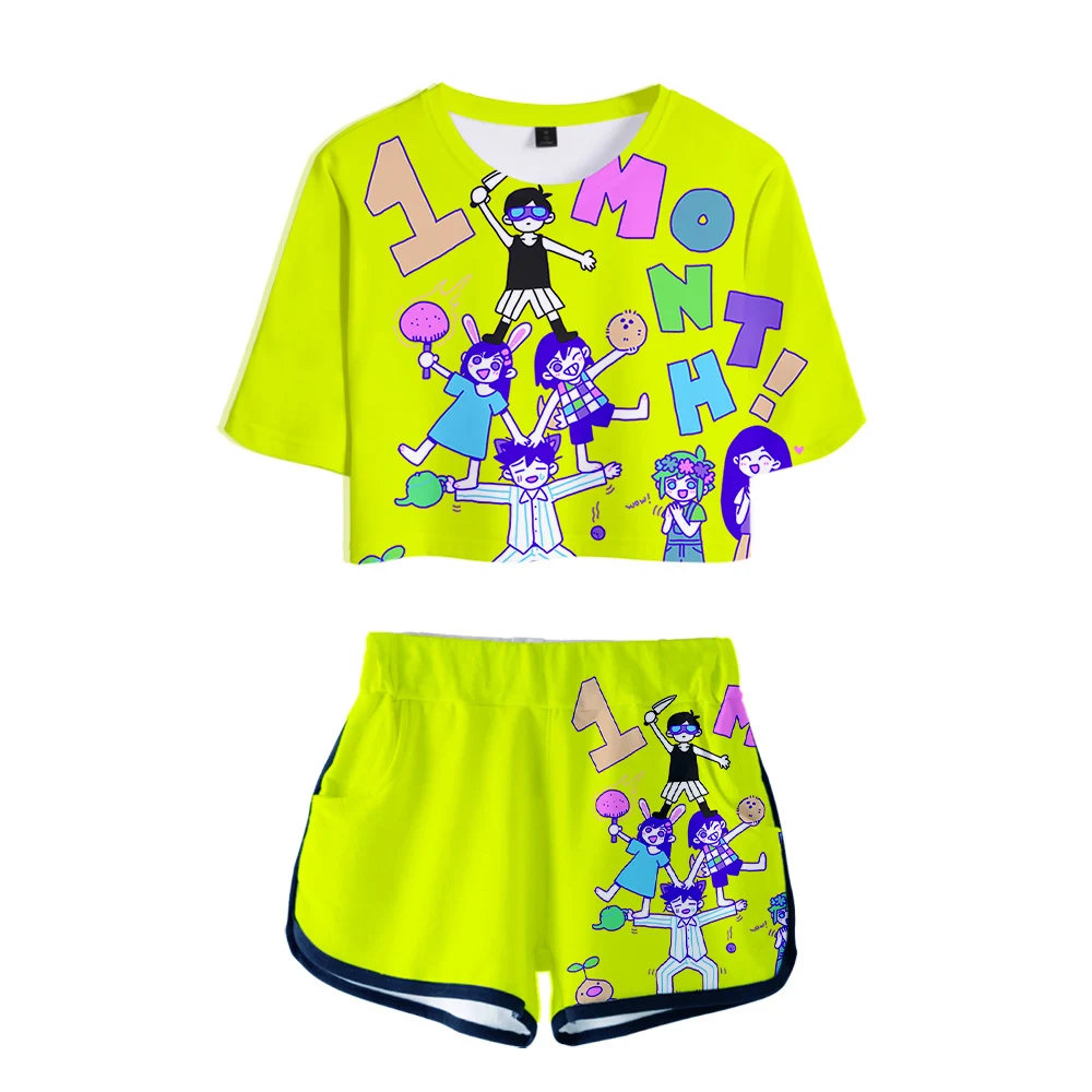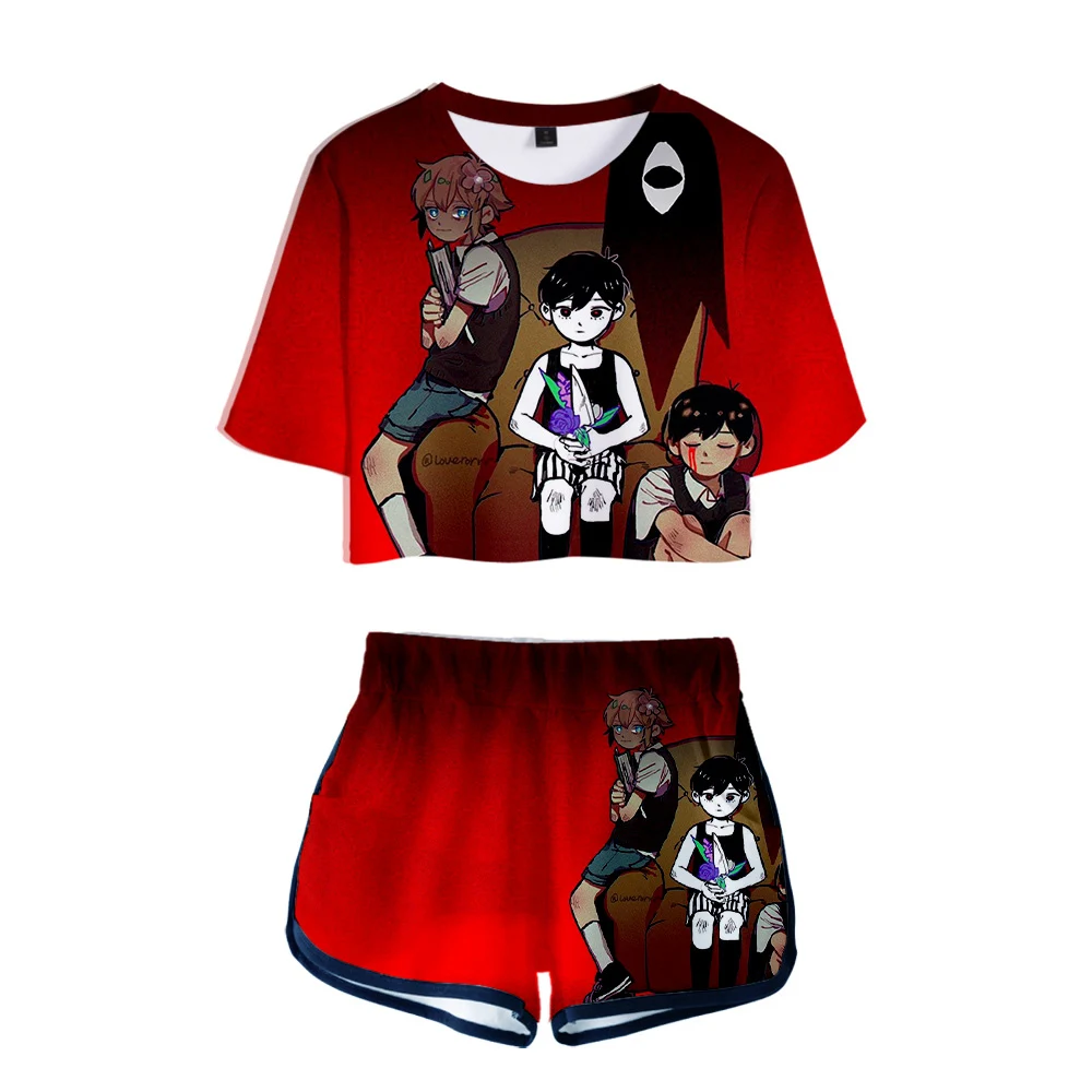 Комплект из двух предметов с мультипликационным мультяшным 3D-принтом Omori, женские сексуальные шорты + Милая футболка, спортивные костюмы для девочек с изображением роса и пупка