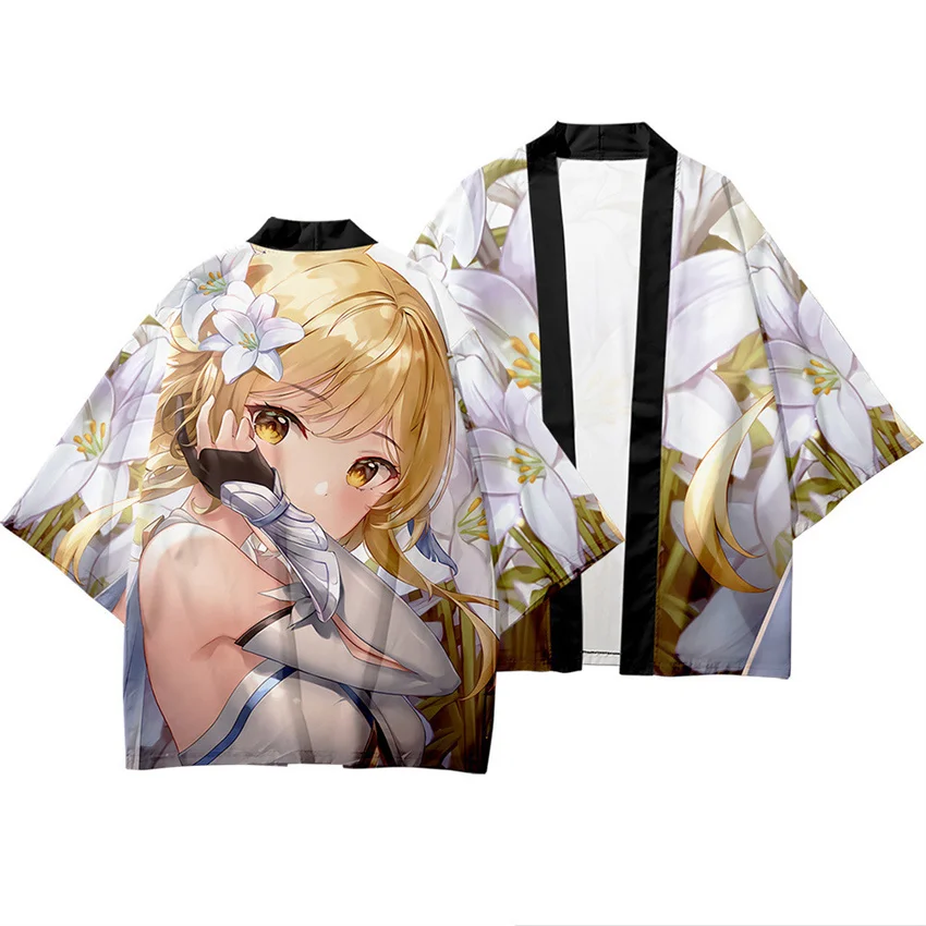Высококачественное ударопрочное кимоно из игры genshin, кардиган для женщин и мужчин, шифоновое пальто, костюм keqing, накидка для косплея, кимоно, рубашка + шорты