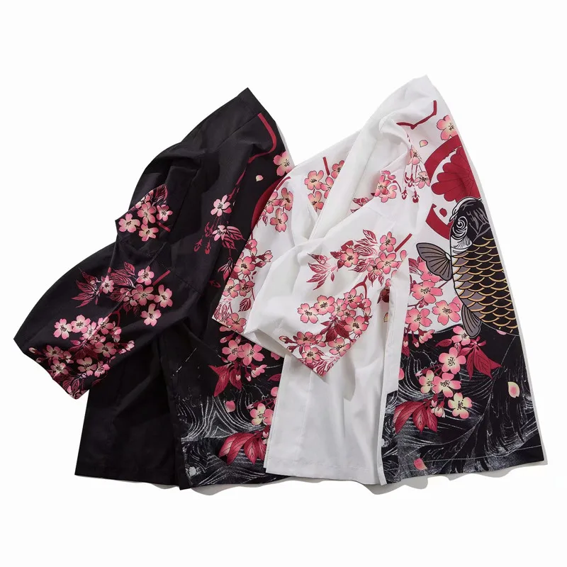 Кимоно женское в японском стиле, тонкий кардиган с принтом кои и рыбы, уличная одежда в японском стиле, свободный традиционный халат, на лето