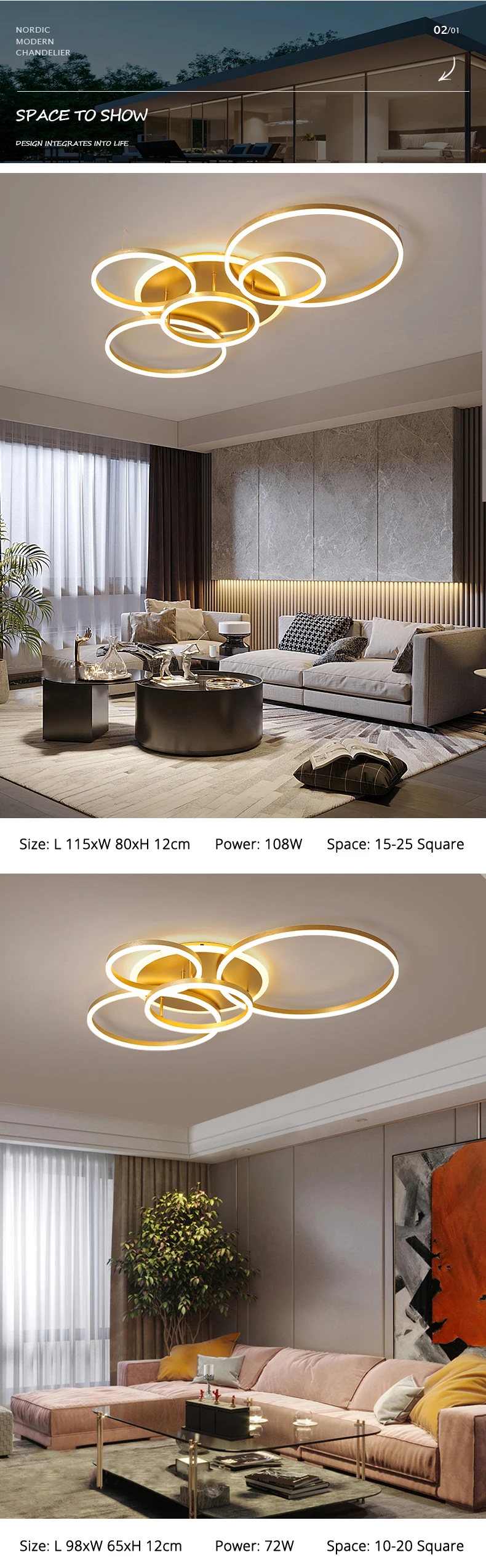 Современные минималистичные алюминиевые круглые светодиодные люстры...