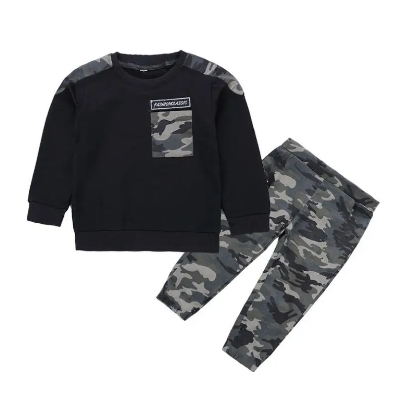 Комплекты детской одежды для мальчиков, камуфляжный топ с надписью,...