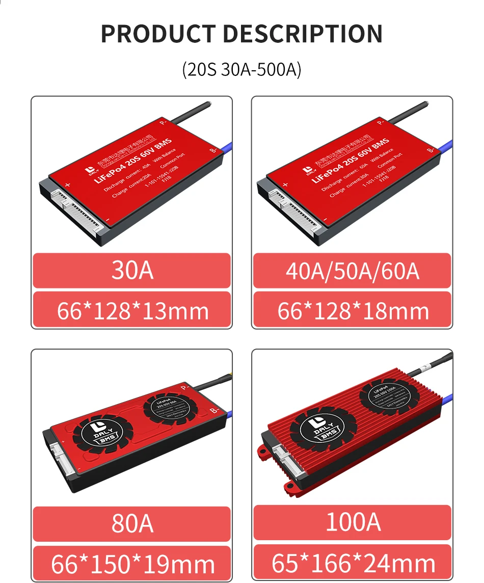 Daly 18650 3,2 V LiFePO4 20S 60V BMS 30A 40A 50A 60A 80A 100A 120A 150A 200A 250A 300A 400A 500A BMS fur LiFePO4 akku BMS