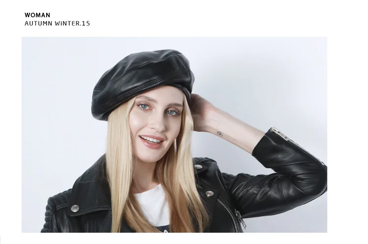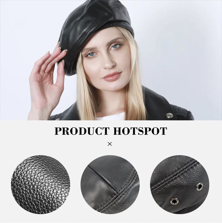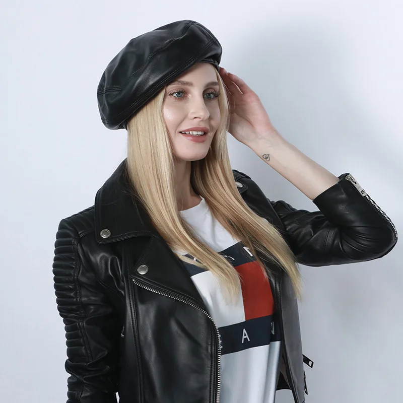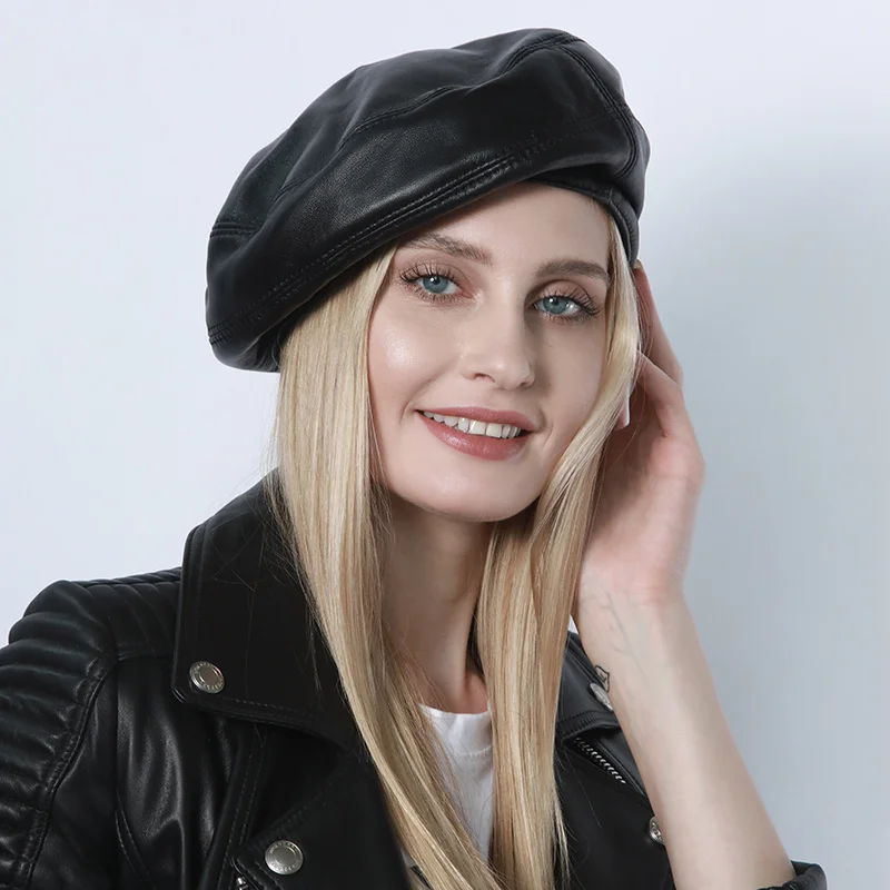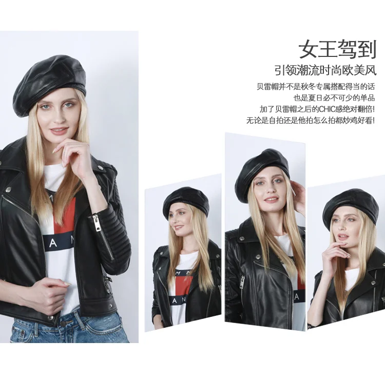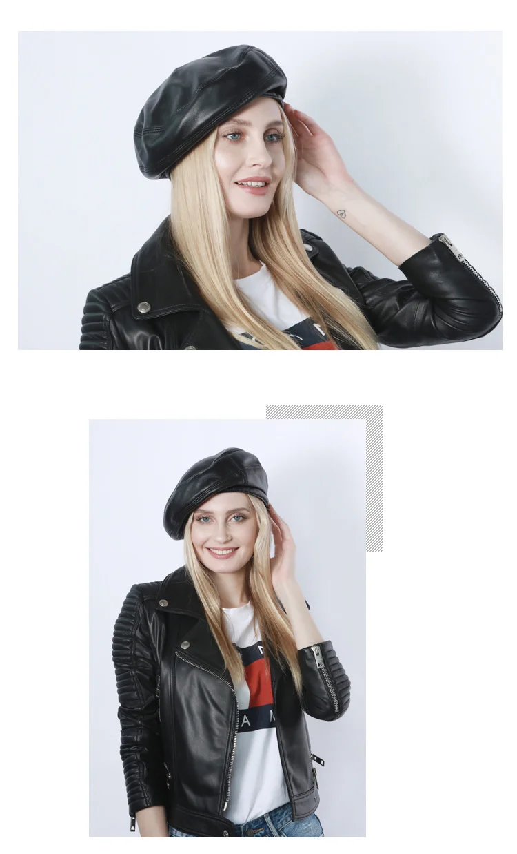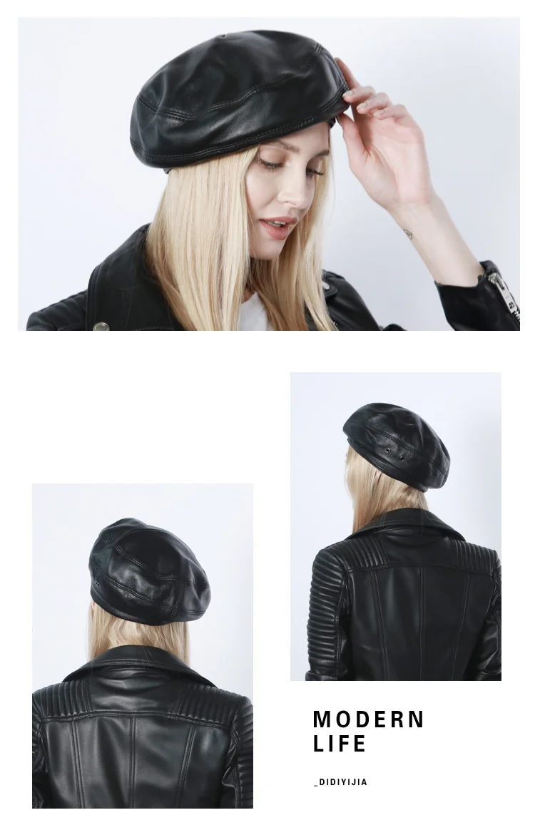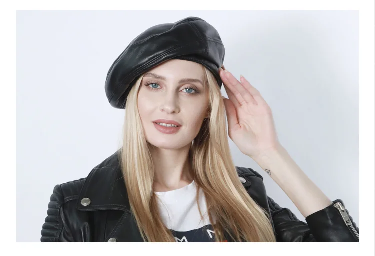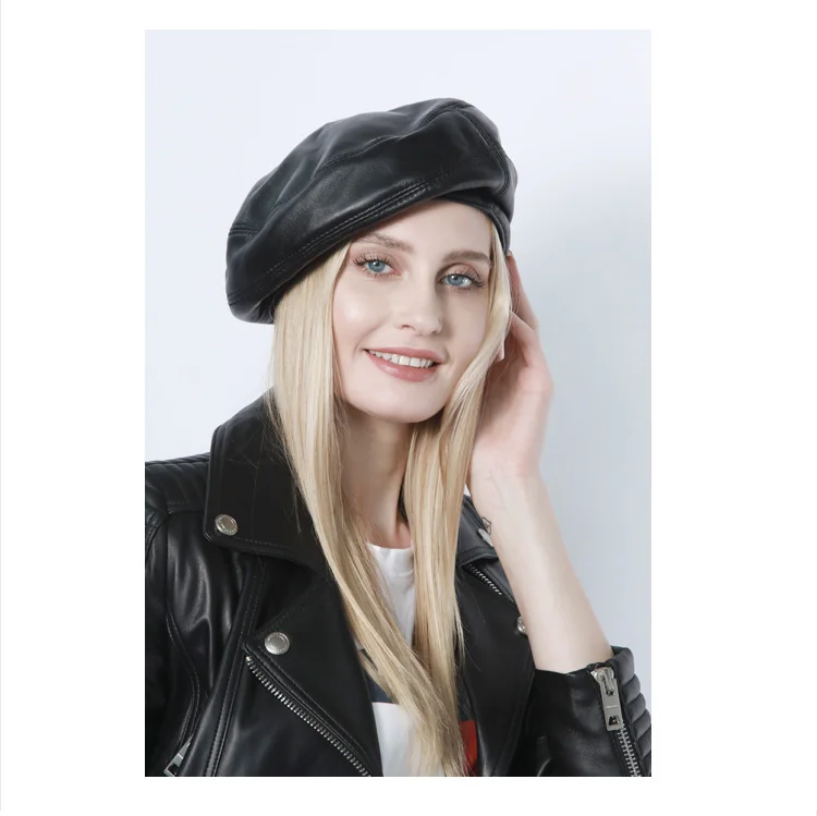 Берет из натуральной кожи зимние весенние шапки для женщин Кепка ху...