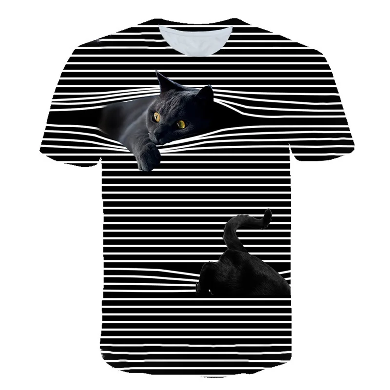 Футболка с 3D принтом черного кота, мужскиеженские летние Забавные ...