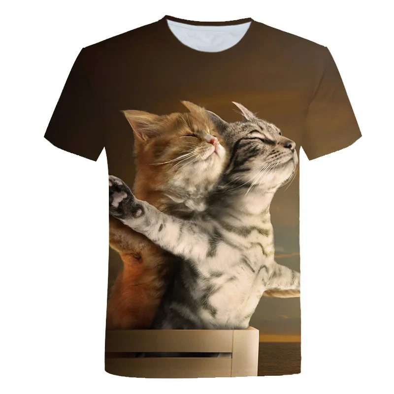 Новинка 2021, летняя Милая парная футболка с 3d принтом кота и живо...