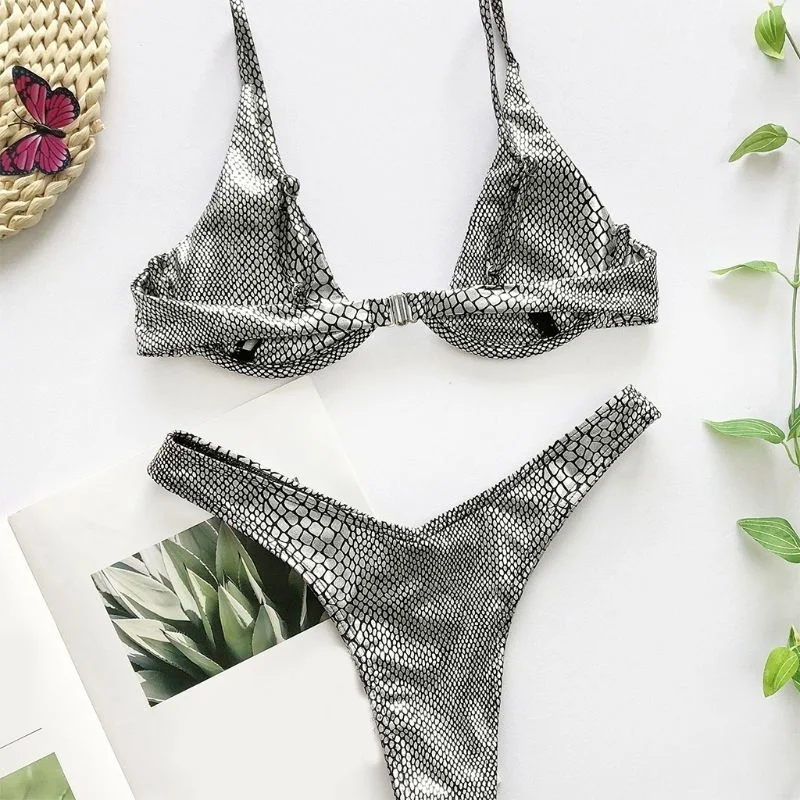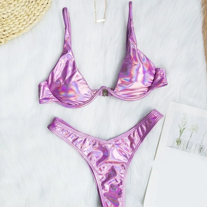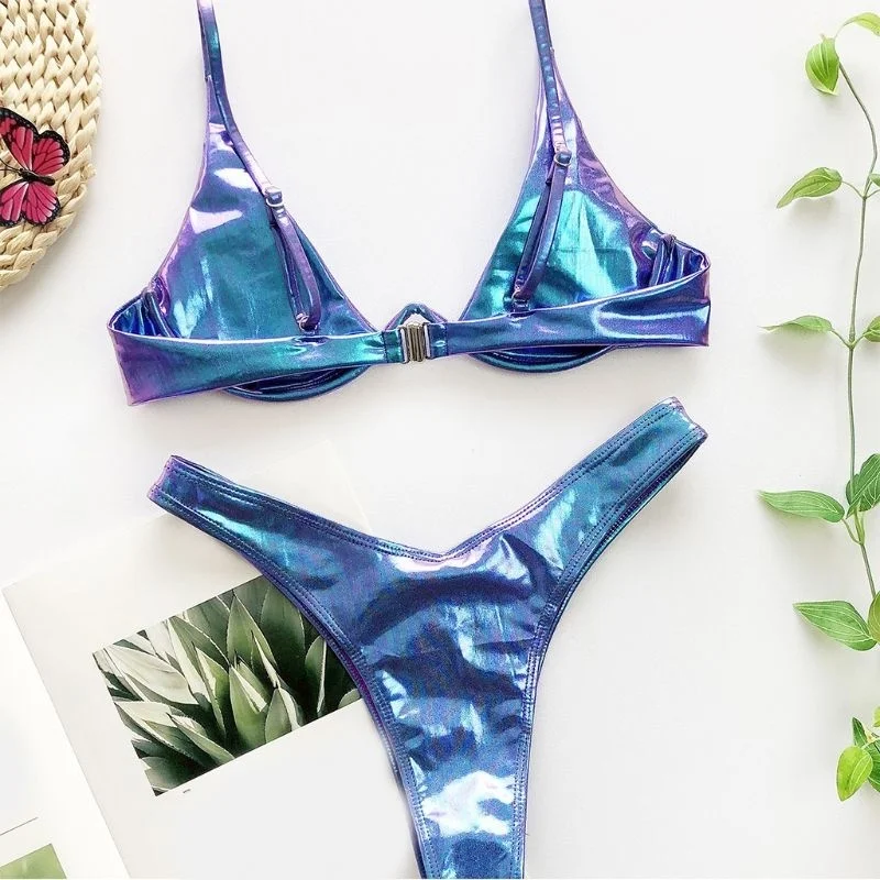 Женский сексуальный бразильский комплект бикини, голографический ме...