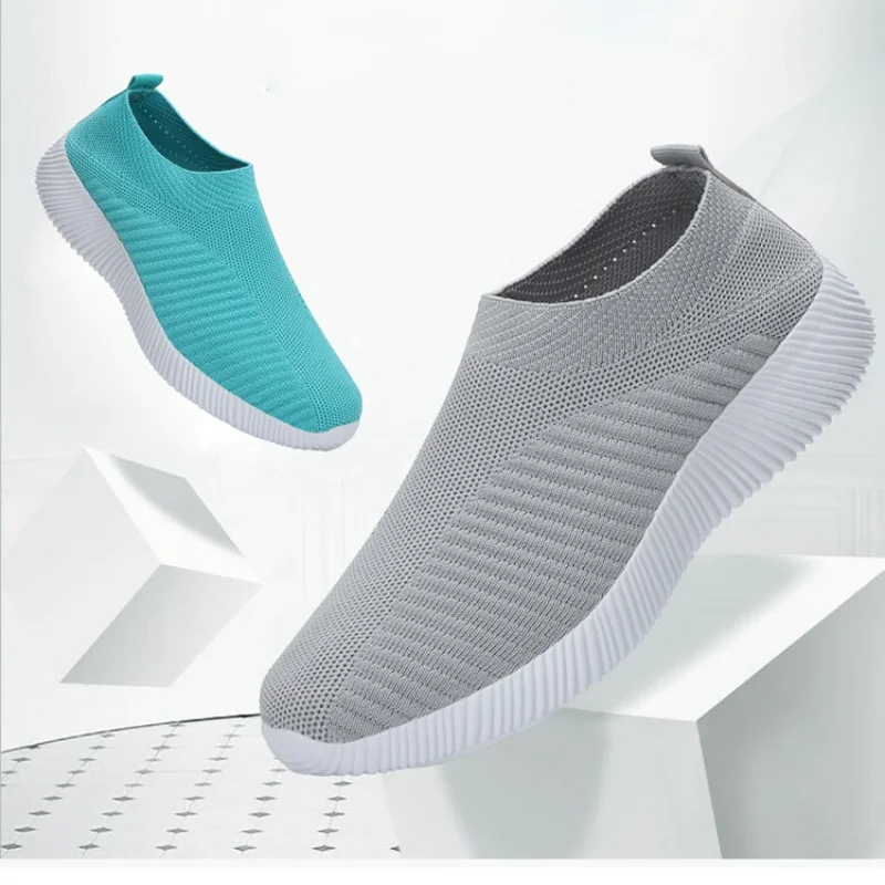 Женские туфли на плоской подошве, дышащие сетчатые кроссовки, без шнуровки, мягкая повседневная обувь, вязаные носки, плоская подошва