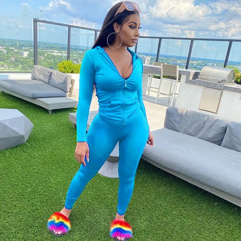 Женский спортивный костюм из двух предметов, спортивная куртка на молнии с длинным рукавом и капюшоном и леггинсы, осенний костюм для тренировок