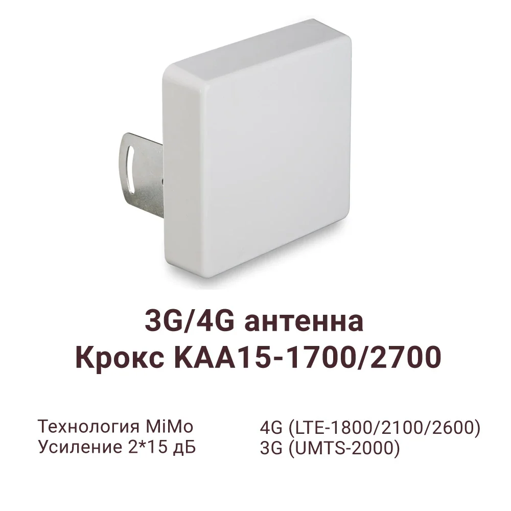 Широкополосная (многодиапазонная), направленная, панельная MIMO антеннаКАА15-1700/2700с коэффициентом усиления 15 дБ рекомендуется для использования совместно с 3G/4G/YOTA модемами, Wi-Fi роутерами и другим оборудованием, работающим в частотном диапазоне 1700-2700 МГц.
