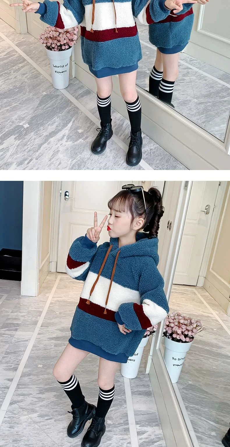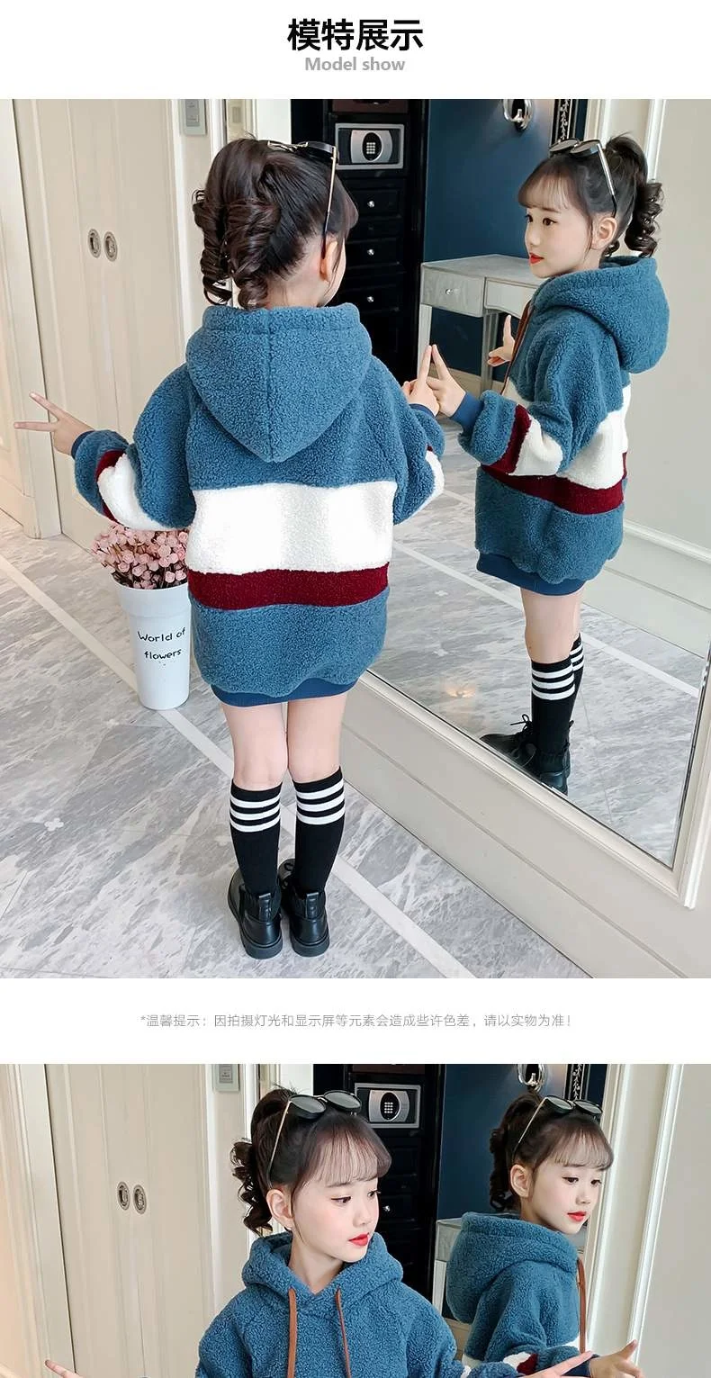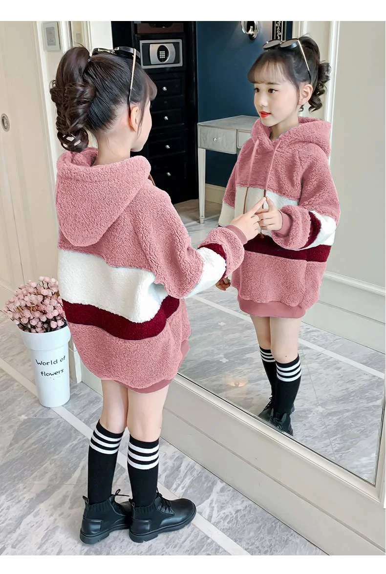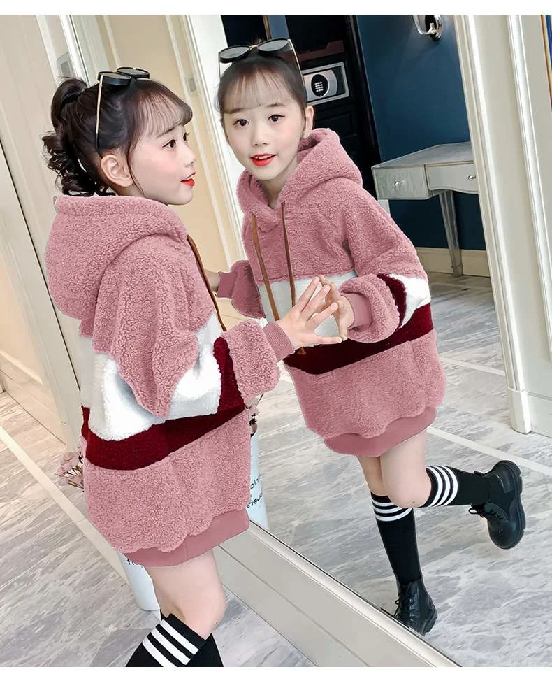 Свободная синяя розовая Зимняя теплая одежда, свитер для девочек, детские Бархатные Топы для малышей и подростков, утепленные детские милые рождественские топы высокого качества