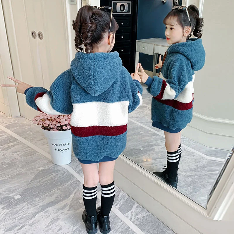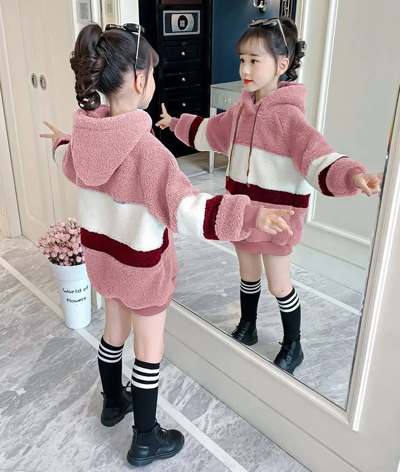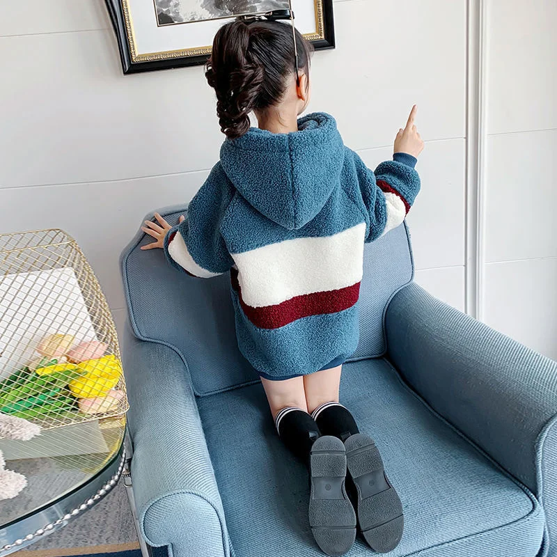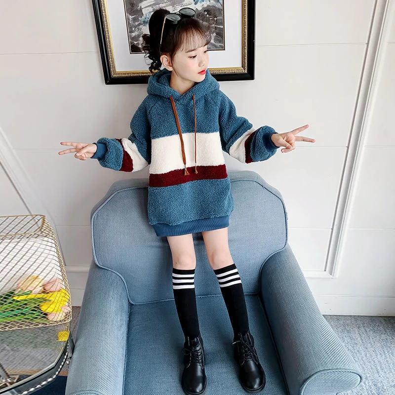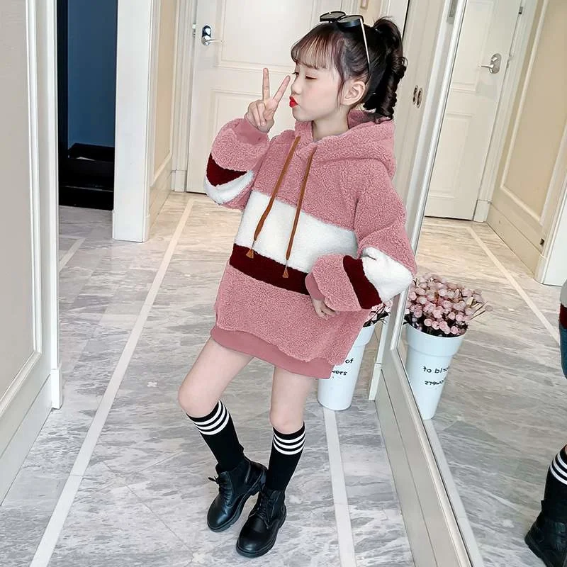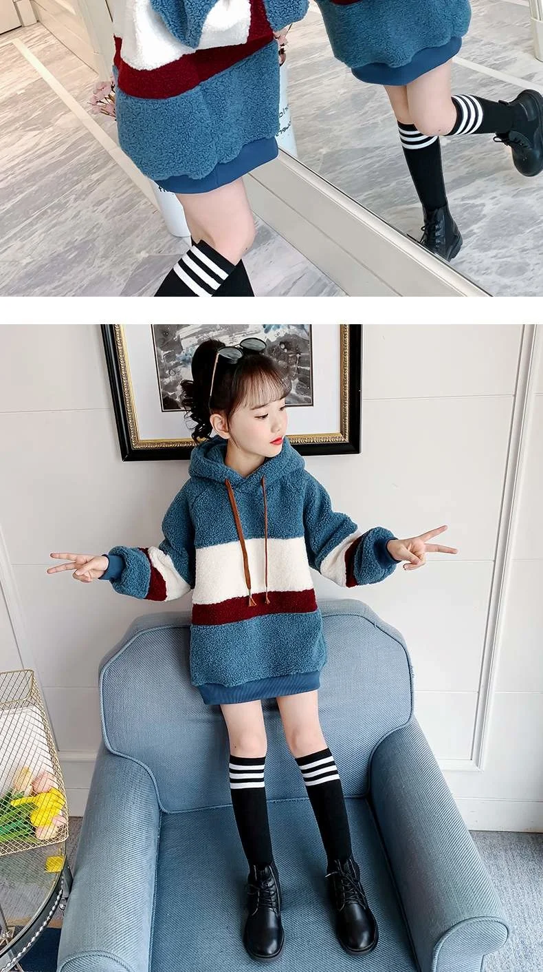 Свободная синяя розовая Зимняя теплая одежда, свитер для девочек, детские Бархатные Топы для малышей и подростков, утепленные детские милые рождественские топы высокого качества