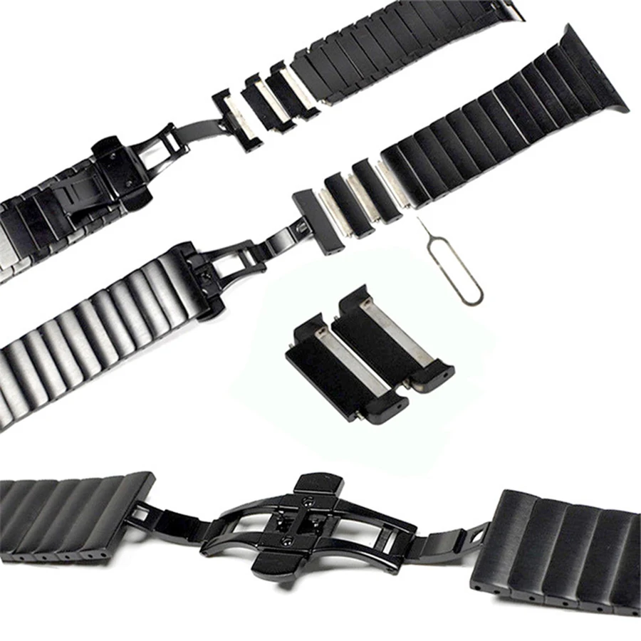Металлический ремешок из нержавеющей стали с застежкой-бабочкой для Apple Watch Series 7 6 40 мм 44 мм для iWatch 5 4 3, браслет 42 мм 38 мм 41 мм 45 мм