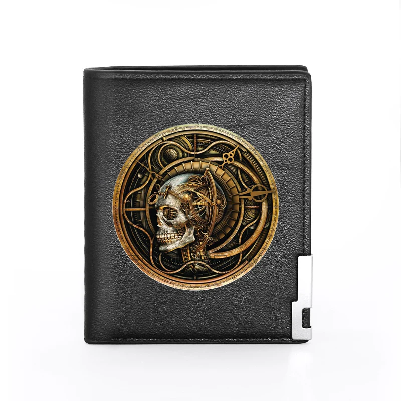 Механический кошелек в стиле стимпанк для мужчин и женщин, классический кожаный короткий бумажник с черепом, тонкий держатель для кредитных картудостоверений личности, стильные кошельки в стиле панк