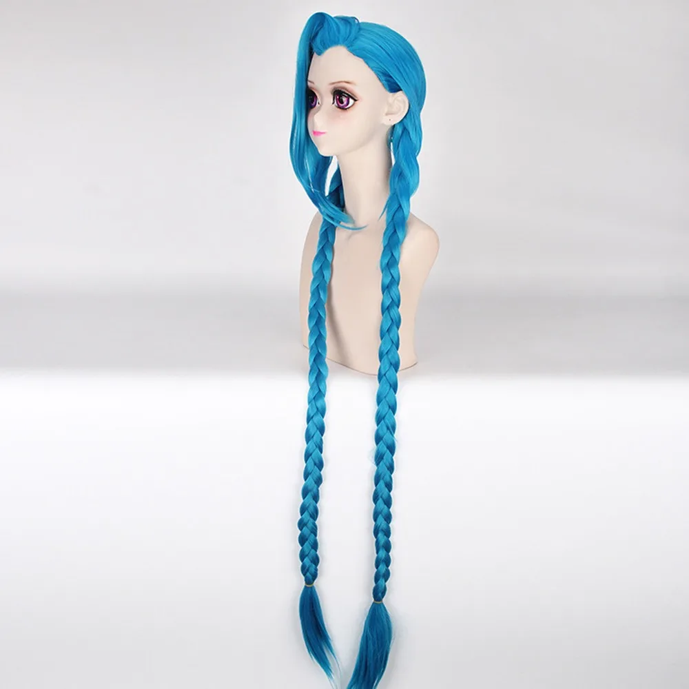 120 см46,8 дюйма, искусственный парик LOL, голубые косы Jinx, парик...