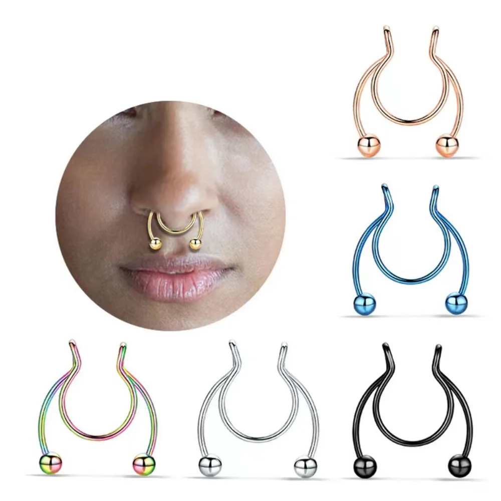 Клипса фальшивая для носа, носовой перегородка в стиле панк, не пирсинг, клипса в стиле хип-хоп, рок, нержавеющая сталь, без перфорации, 1 шт.