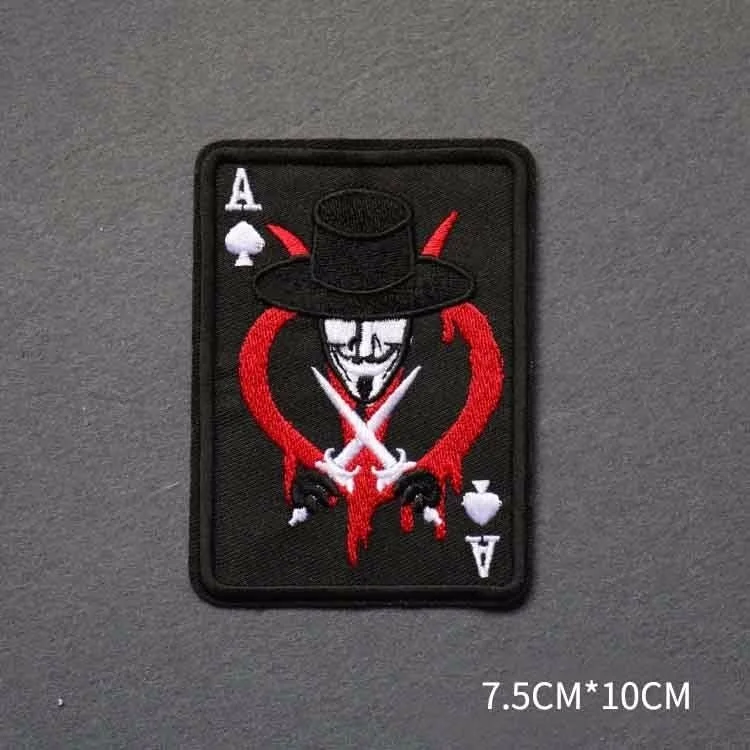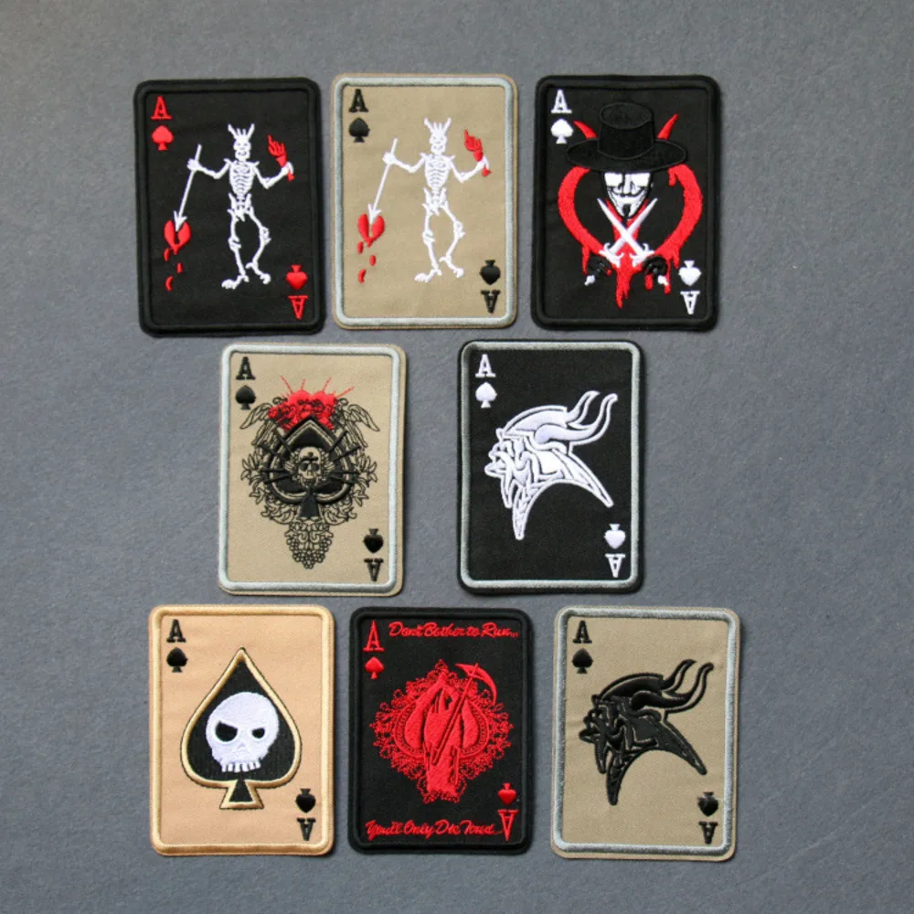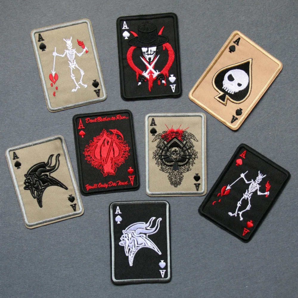 Панк стиль вышивка тканевые наклейки нарукавники покер Ace жнец смерти красный персик уличный армейский веер Сумка Одежда патч
