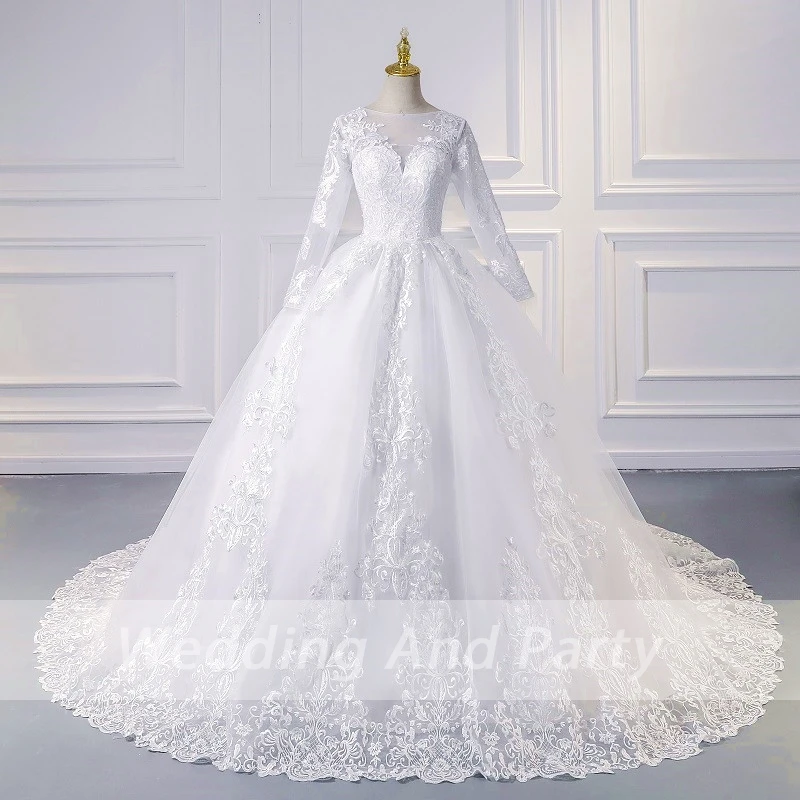 Роскошное Свадебное платье принцессы с круглым вырезом и длинным рукавом свадебное платье женское бальное платье кружевное свадебное платье мусульманское свадебное платье