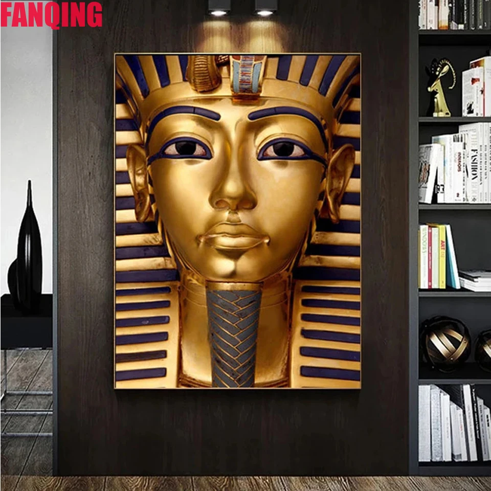 Полностью квадратная/круглая Алмазная картина египетская Сфинкс королева Алмазная вышивка, портрет, стразы, Декор для дома