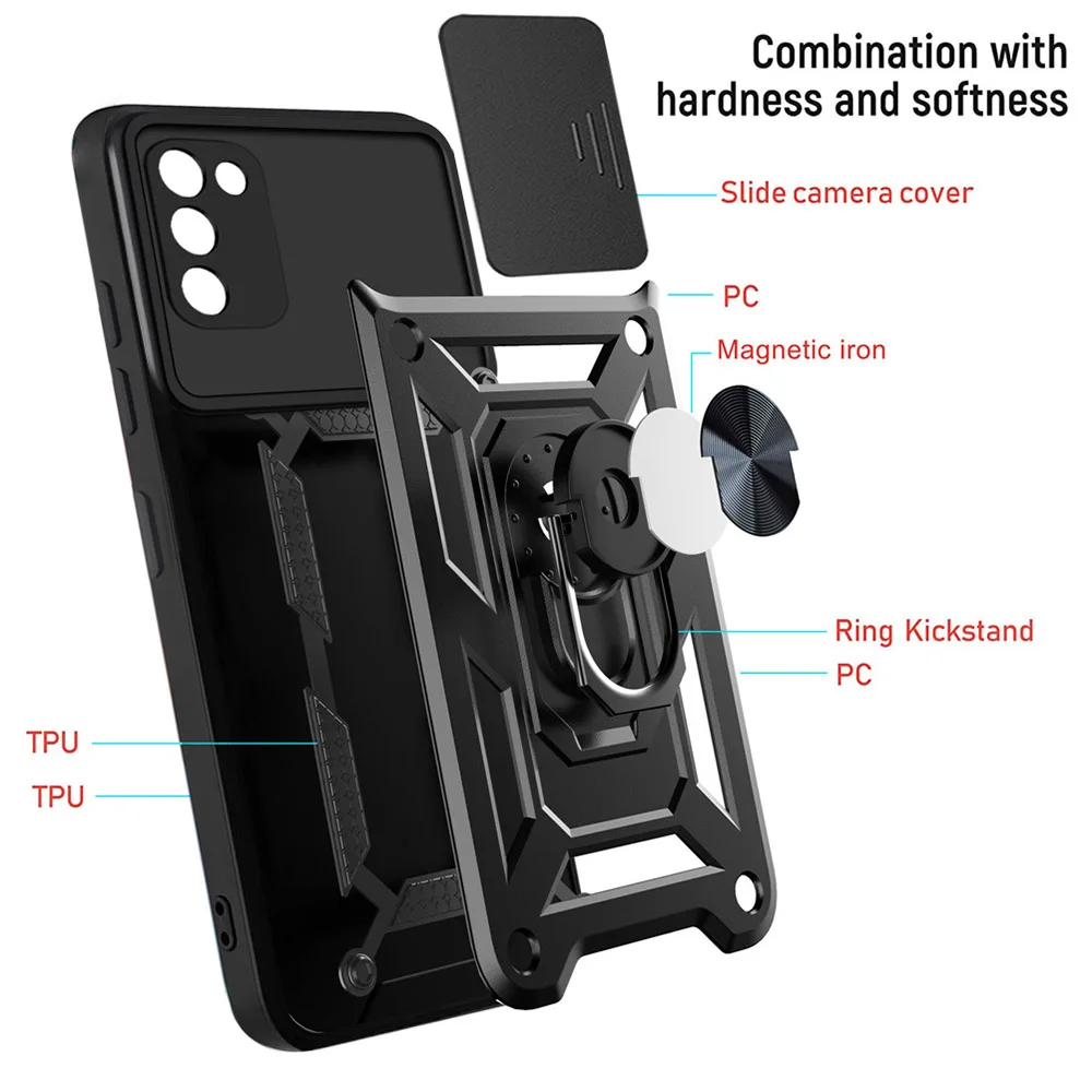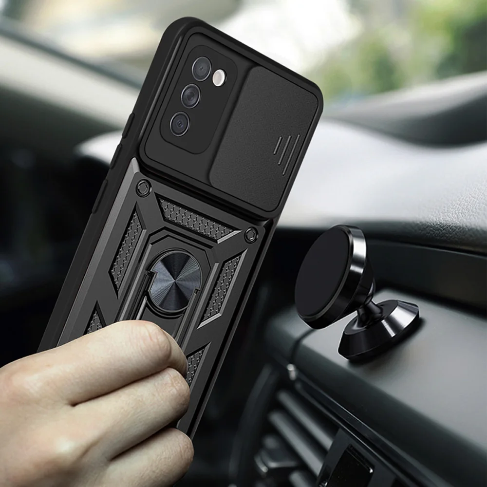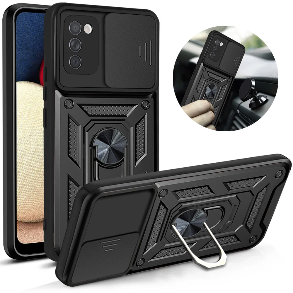Бронированный магнитный металлический чехол для Samsung Galaxy A02S A03S A12 A22 A51 A71 4G A Quantum 2 S20 FE S21 Ultra A52 A72 A32, чехол с кольцом