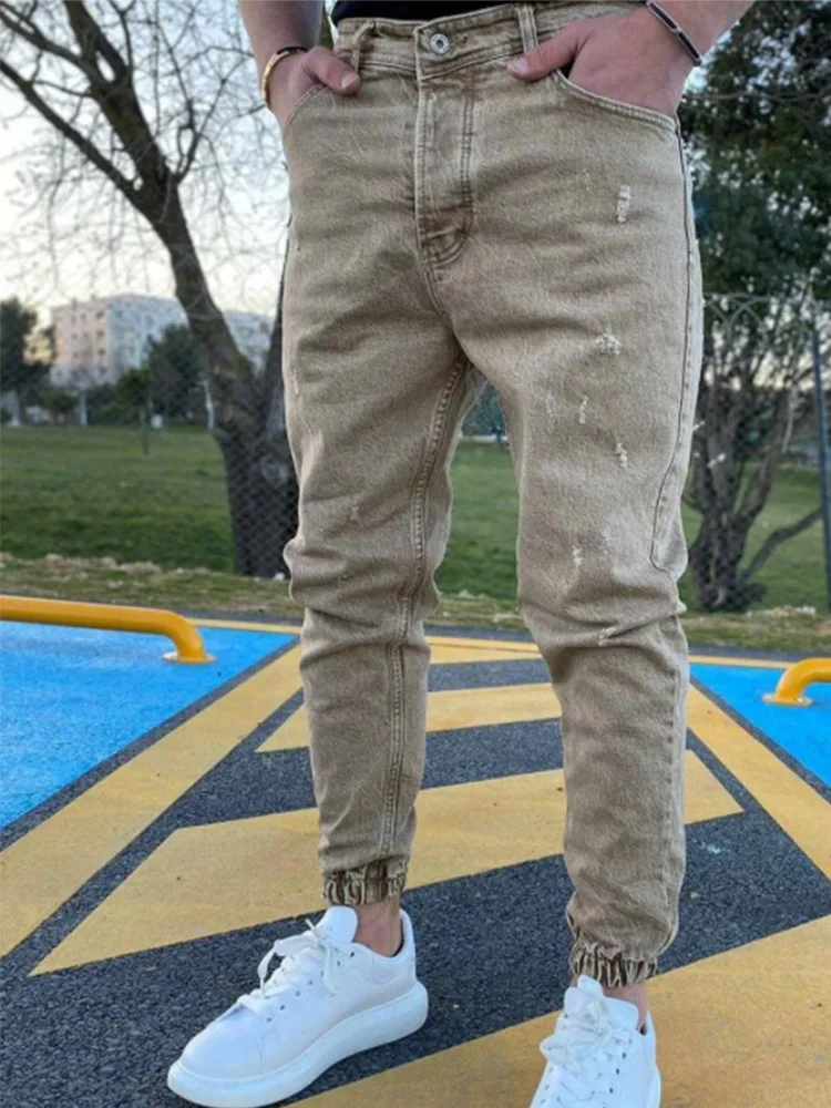 Джинсы мужские облегающие однотонные с эластичным поясом, осень 2021