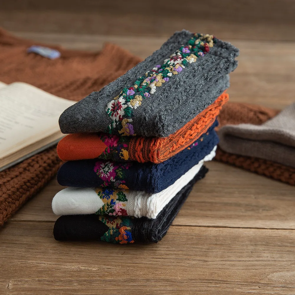 Весенне-осенние женские хлопковые носки в Ретро этническом стиле с цветами, Повседневные Удобные женские Забавные милые подарки для девушек