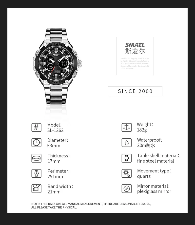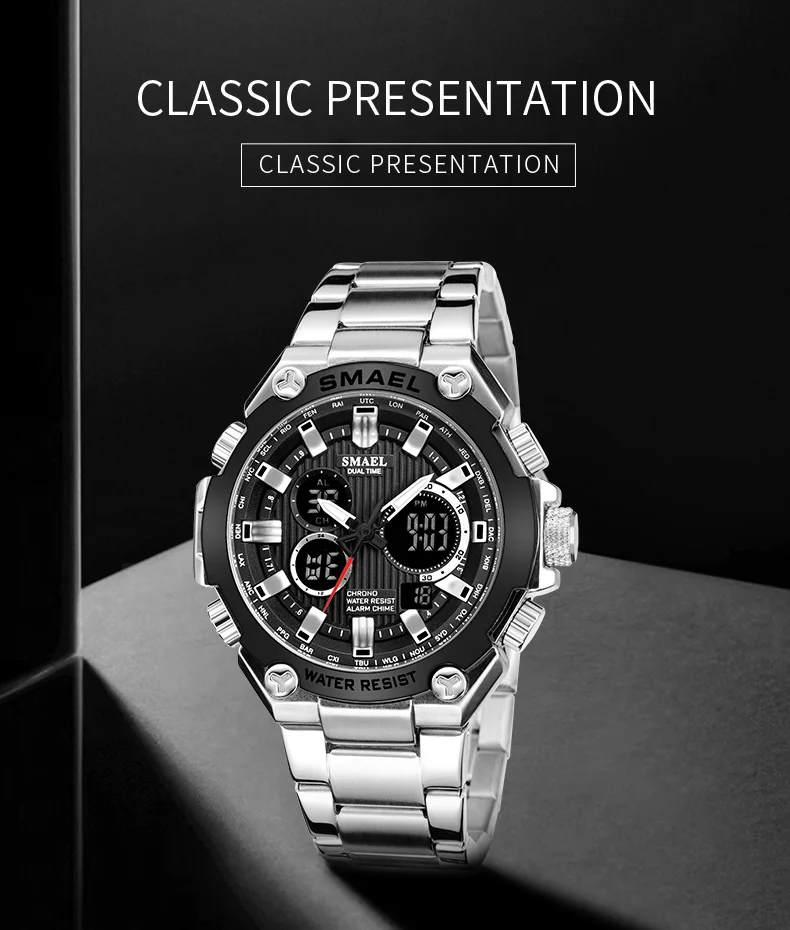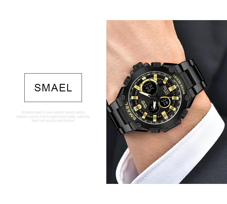 Мужские кварцевые часы с автоподзаводом SMAEL, водонепроницаемые механические армейские наручные часы с календарем,
