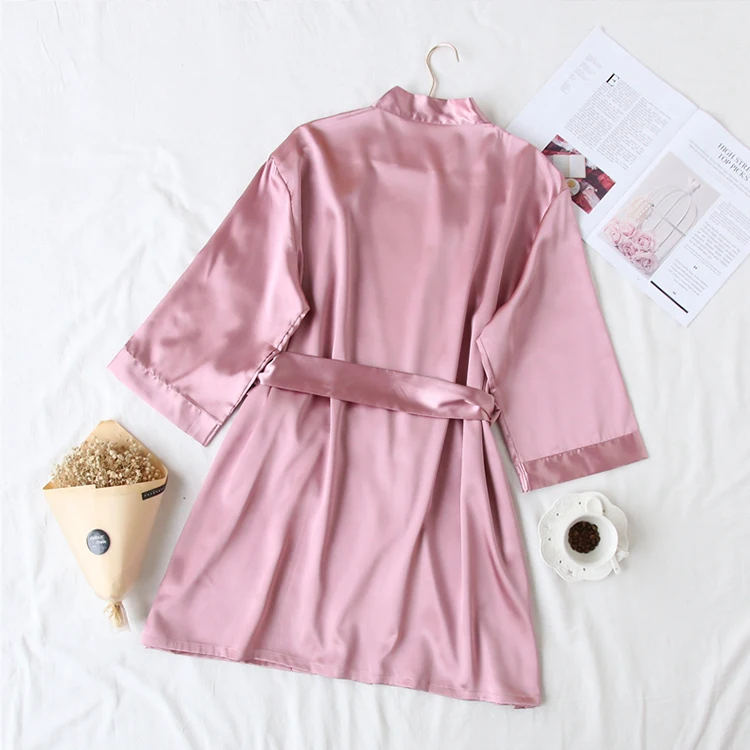 Халат женский атласный, пикантная Ночная рубашка в китайском стиле, пикантный халат-кимоно для невесты, цвет шампанского, на лето