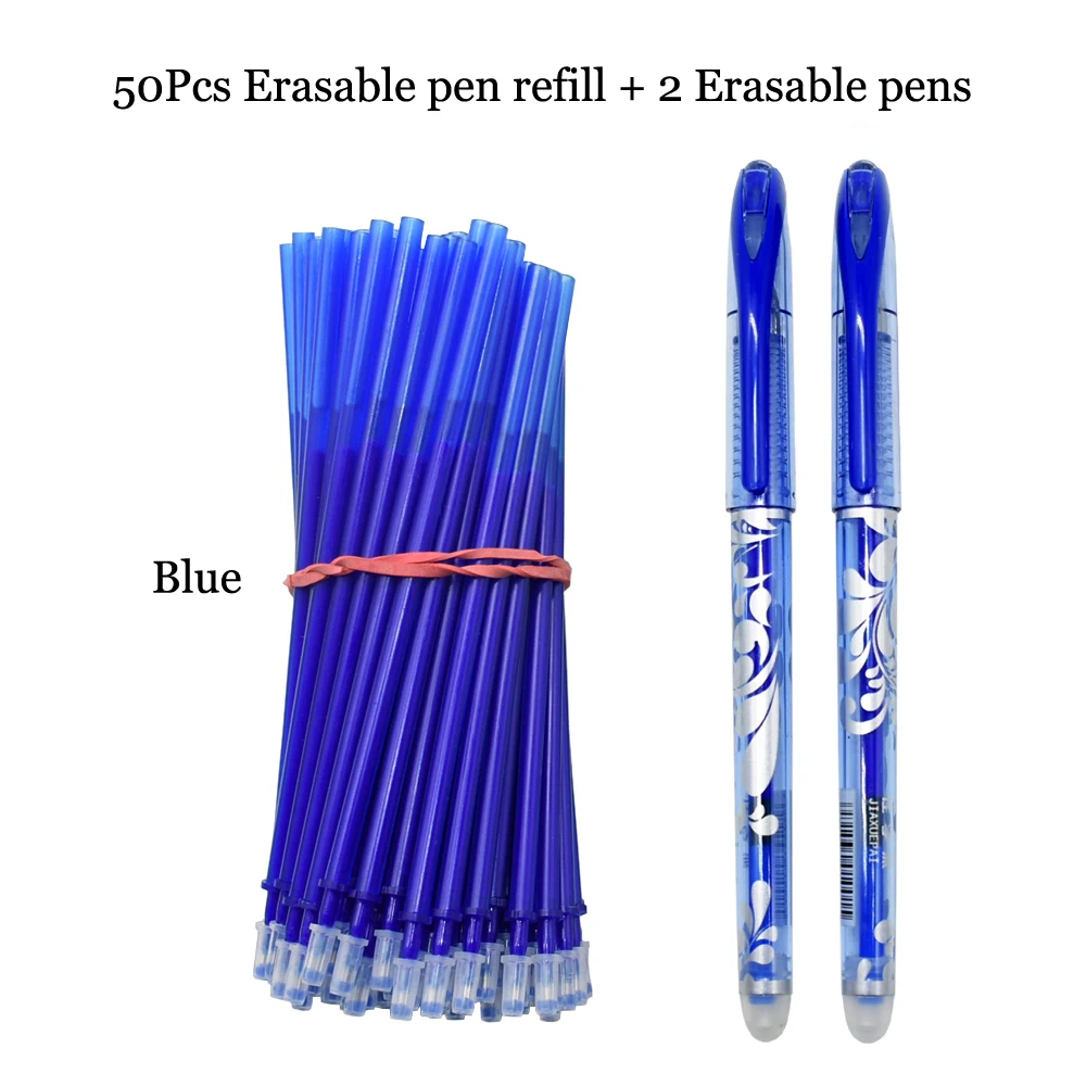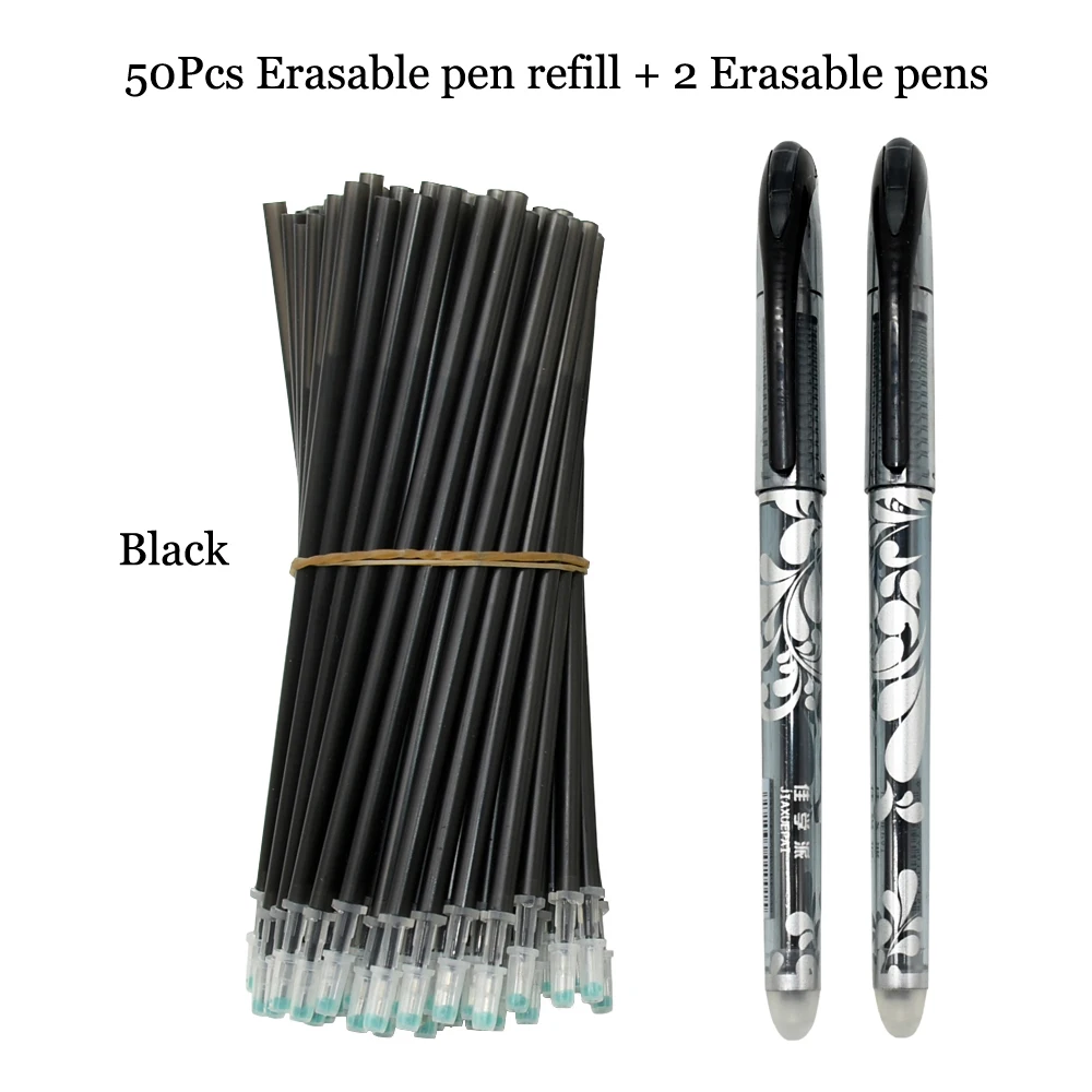 -Название: набор стираемых гелевых ручек-Диаметр пишушей головки: 0,5 мм-Количество: 50 шт. стираемая ручка + 2 шт. стираемая ручка-Цвет чернил: синий/черный на выбор-Материал: пластик-Прямая доставка: Поддержка-Гладкое письмо, без сухих пятен-100% новый и высокое качество-Примечание покупателя: из-за стираемости, он не может быть использован для подписания ценных бумаг и важных документов.