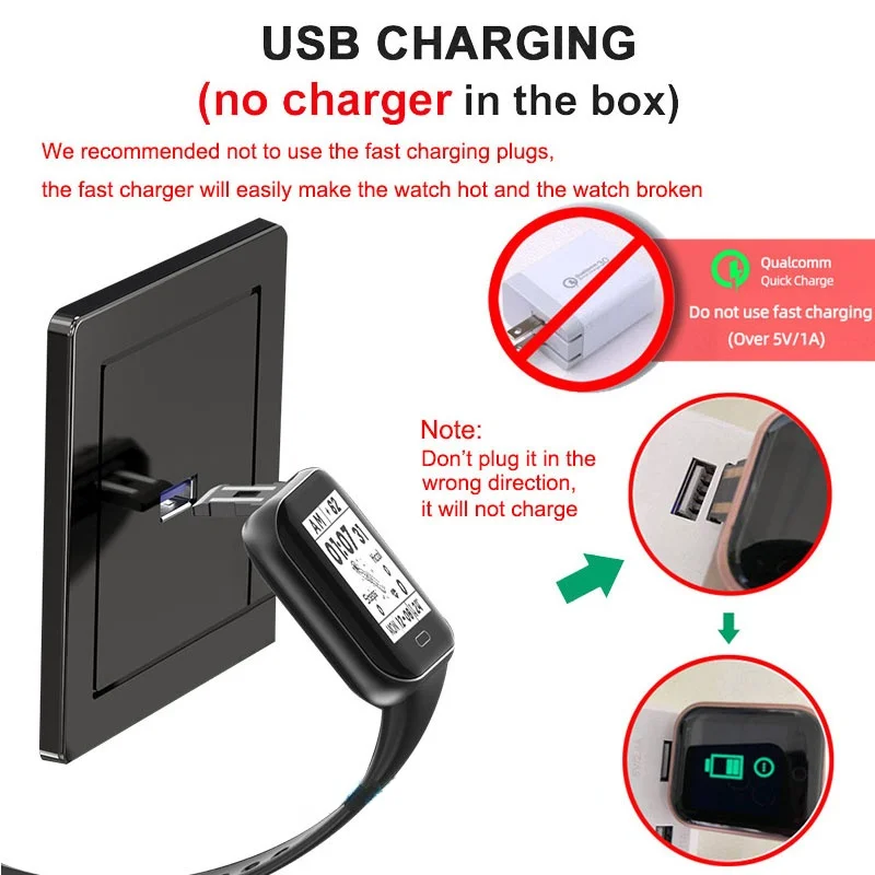Быстрая зарядка от USB Новый брэндовый браслет метод зарядки, быстросъемный браслет дизайн, может быть заряжен подключением к USB интерфейсу, устраняя проблемы с переноской зарядного кабеля и зарядной стойки. Умный спасательный помощник Часы могут контролировать шаги, калории, частоту сердечных сокращений, расстояние, качество сна и т. Д. Дня. В то же время он может подключаться к смартфону для просмотра информации, удаленно фотографировать, извлекать мобильные телефоны и другие продуманные и удобные функции, чтобы сделать вашу жизнь более удобной. Практичный Будьте в курсе интенсивности ваших упражнений и физического состояния, чтобы своевременно скорректировать свой фитнес-план. Несколько спортивных режимов Телефон имеет различные спортивные режимы, встроенные, нет необходимости добавлять на телефон, носить браслет непосредственно для физических упражнений, браслет может записывать все ваши спортивные данные. Приятный для кожи материал Браслет изготовлен из легкого мягкого ТПУ, который имеет легкий дизайн, не ощущая при носке. Мониторинг сердечного ритма Оснащен оптическим датчиком сердечного ритма на запястье, введите интерфейс для тестирования сердечного ритма в течение нескольких секунд, Отобразите результаты измерения сердечного ритма.