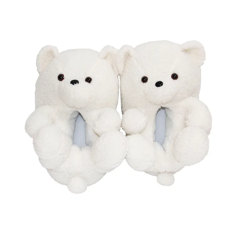 2022 Симпатичные женские зимние теплые ботинки для дома, пушистые тапочки мишки Тедди для девочек и мальчиков, удобные белые Тапочки-лодочки без шнуровки