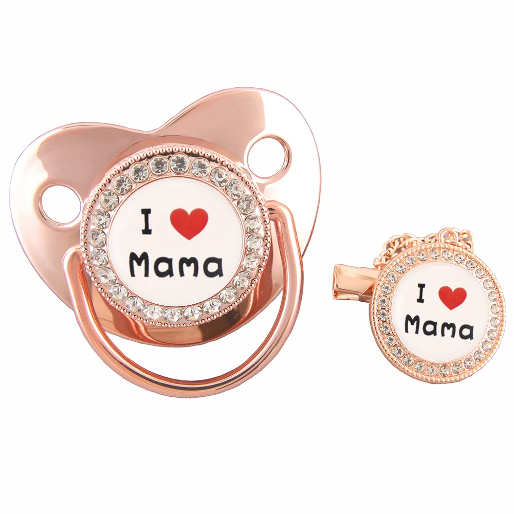 Роскошная Корона из розового золота медведь я люблю мама папа ребенок Пустышка с зажимом BPA бесплатно силиконовые Новорожденные соска блестящая золотая соска для младенцев