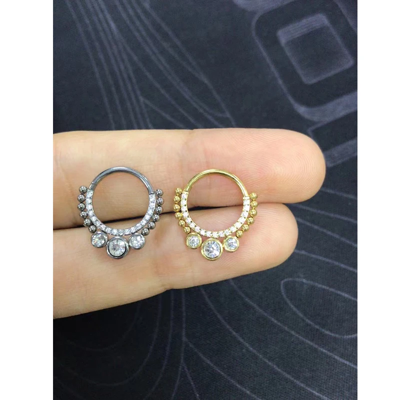Новинка, F136 титановое кольцо для носа, шарнирное CZ сегментное кольцо, шариковое соска, кликер для ушей, хрящ, спираль, серьги для губ, пирсинг носа