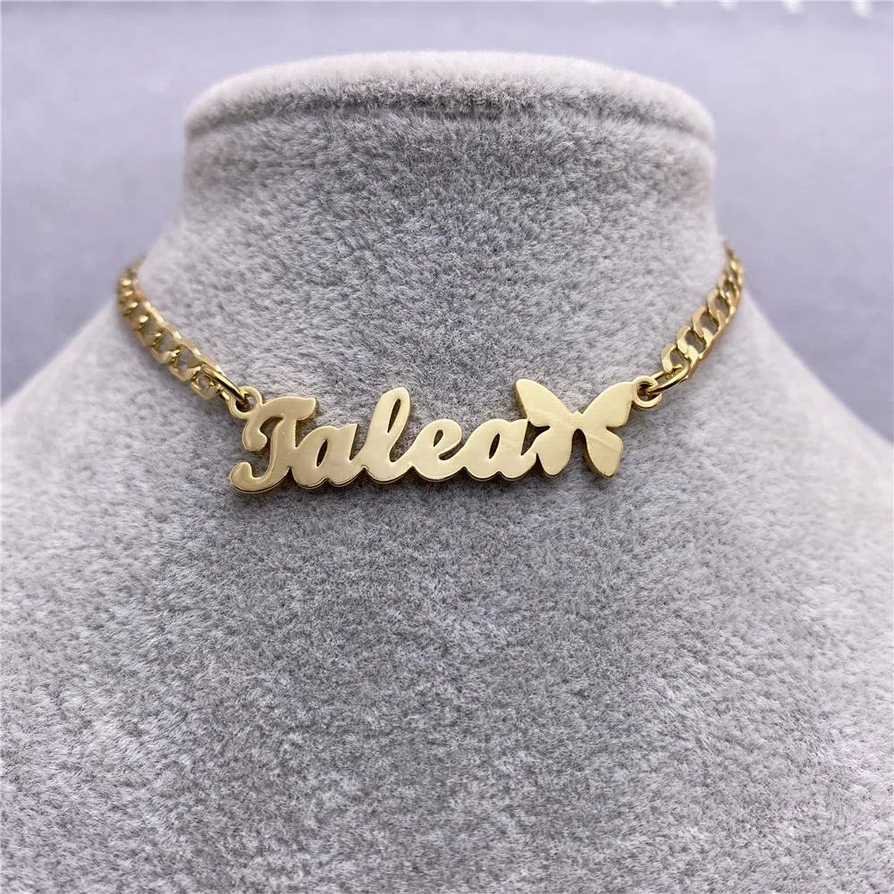 Ожерелье с именем на заказ с бабочкой из нержавеющей стали кубинска...