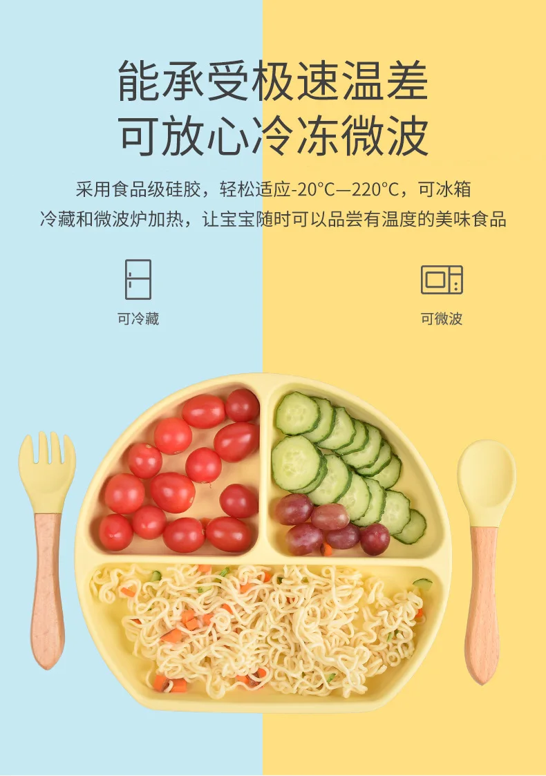 Детские тарелки для продажи, тройная посуда, силиконовая тарелка для кормления ребенка, тарелка для обучения, тарелкалоток, всасывающая детская посуда