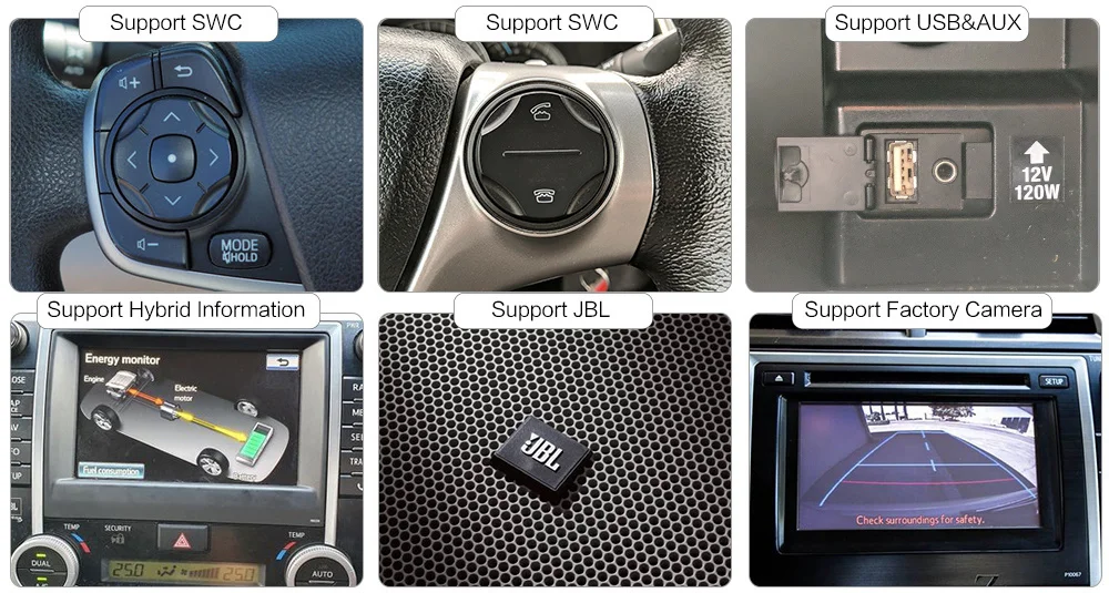 Поддержка оригинальной камеры, AUX/USB , SWC, информация о автомобиле, JBL,
