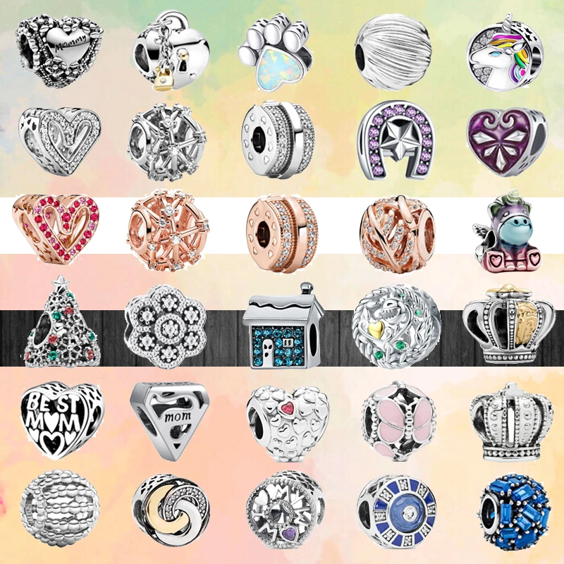 2021 новые серебряные бусины с блестящим сердцем, мамой, единорогом, короной, подходят для оригинальных браслетов Pandora с подвесками, браслеты для женщин, ювелирные изделия сделай сам, подарки