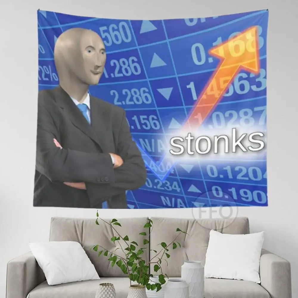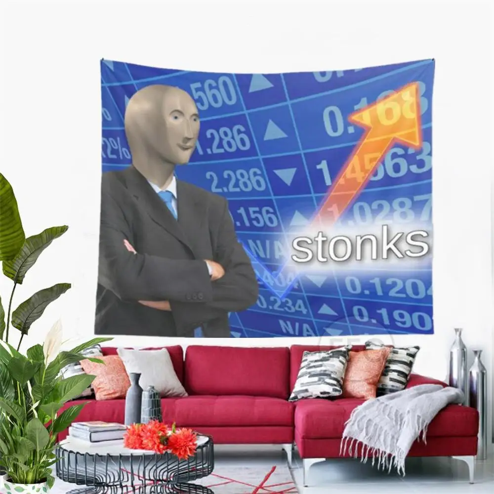 Гобелен Stonks Meme, декор для комнат в эстетике, настенный гобелен, забавные гобелены, одеяло, потолочный чехол, покрывало, простыня, занавеска