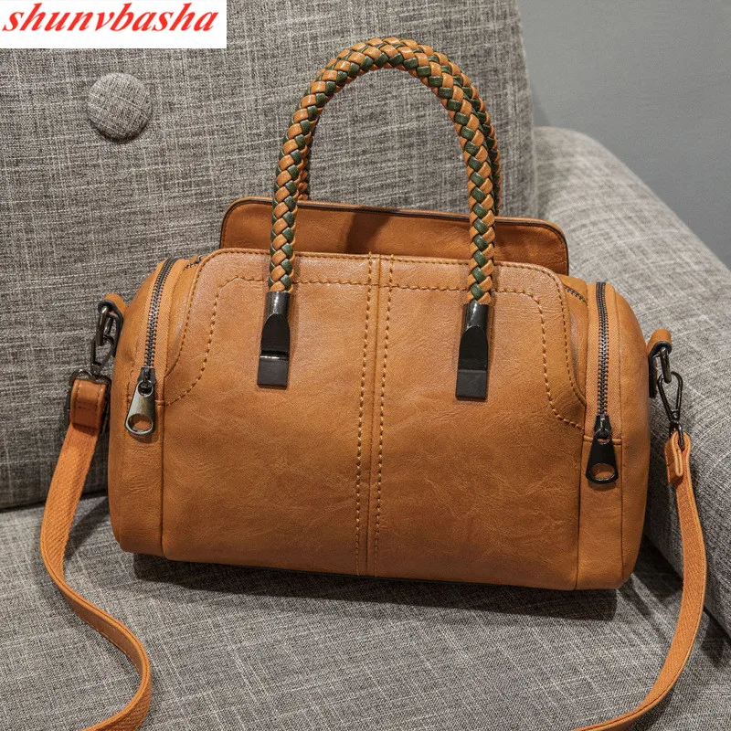 Женские сумки из 100% натуральной кожи, новые европейские ретро сумки-тоуты для женщин, женская сумочка-Бостон с заклепками, женские кожаные сумки-мессенджеры