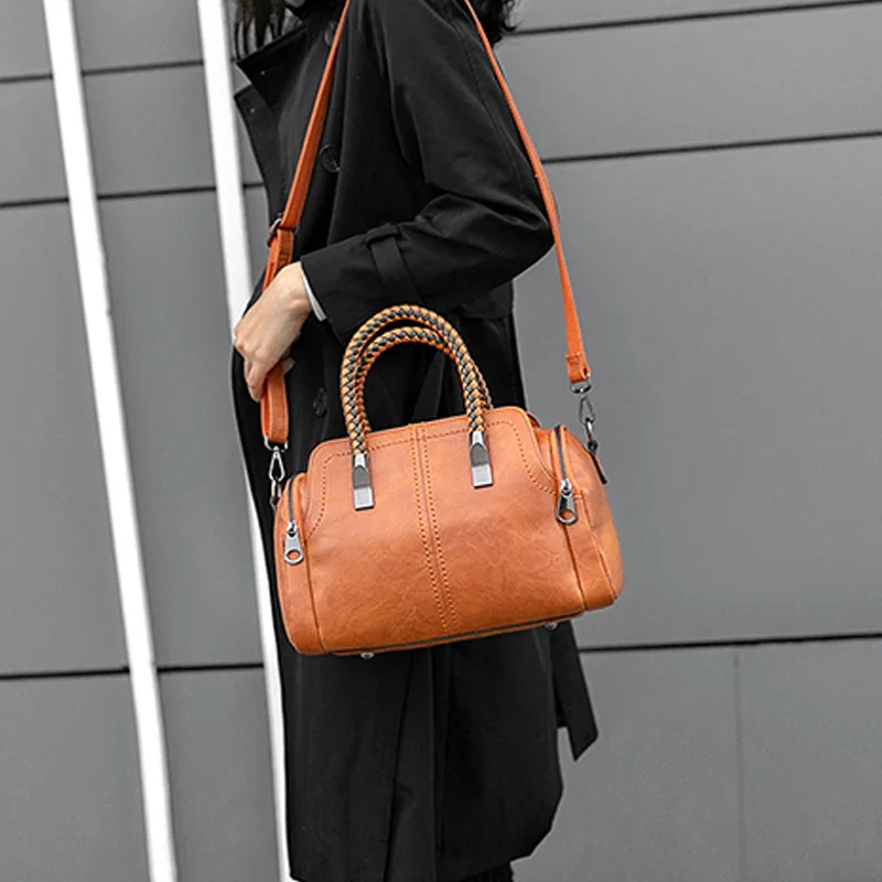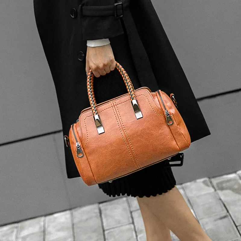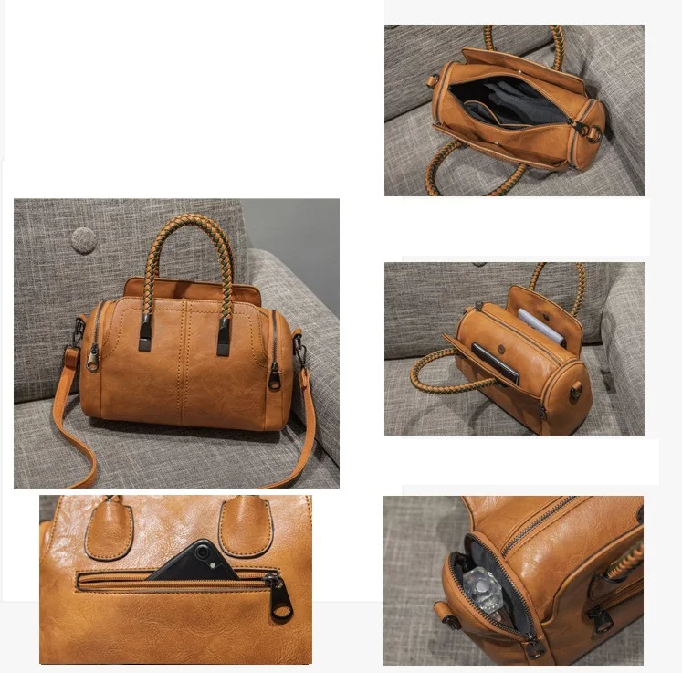 8Luxury Brand Oil Wax Cowhide Women Leather Handbags