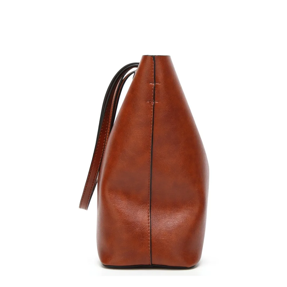 Вощеная кожаная сумка-мешок для женщин, простая сумочка на двойном ...