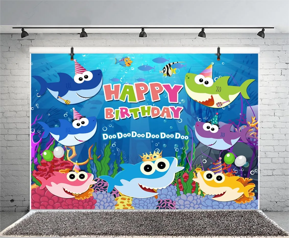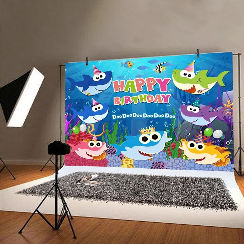 Фон для фотосъемки с изображением семьи акул, короны, детского дня рождения, вечеринки под водой, фон для фотосъемки, реквизит для фотосъемки, баннер