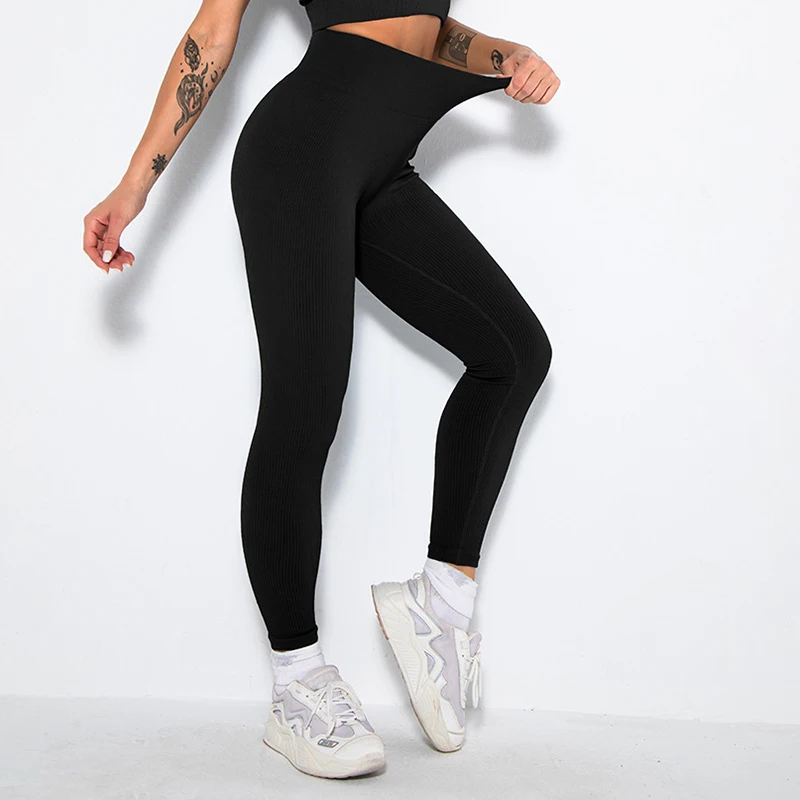 Ребристые женские леггинсы, спортивные колготки для женщин, Бесшовные штаны для йоги, облегающие спортивные Леггинсы для фитнеса, пуш-ап, спортивные легинсы для легкой атлетики