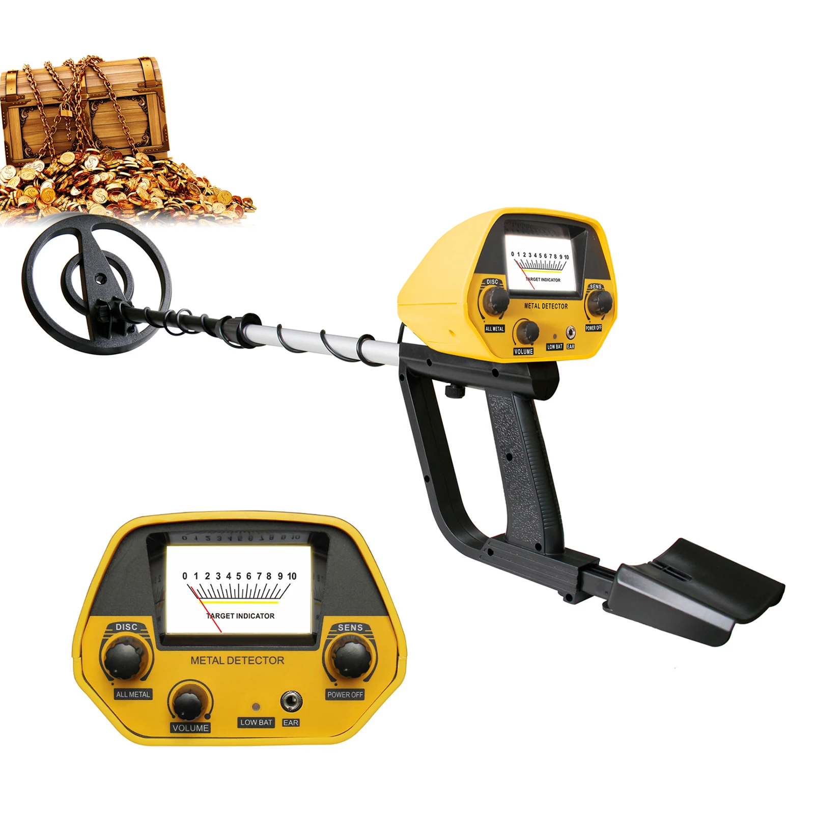Характеристики:Основной материал: металлЦвет: оранжевыйТип: без наушниковРежимы работы: все металлические и дисковыеЧувствительность: Максимальная глубина> 180 мм в металлическом режиме (тестовая Монета: U.S 25 Cent)Обнаружение предметов: металл (железный гвоздь, покрытие из железа, алюминиевая петля, маленький алюминиевый продукт, монеты, золото, бронза, серебро)Рабочая частота: 5,69 кГцИсточник питания: 2*9 В батареи (не входят в комплект)Рабочий ток: в режиме ожидания 10 мА, макс. 70 мАИндикация обнаружения: механический режим указателя, Аудио режимЧувствительность: регулируемаяОбъем: РегулируемыйРегулируемый стержень: максимальная длина: 1080 мм/42,5 дюйма, минимальная длина: 780 мм/30,7 дюймаВодонепроницаемый диаметр поисковой катушки: 200 мм/7,9 дюймаДинамик или разъем для наушников: 1,2"Применение: тестирование металлического инородного тела сырья, топлива и продуктов питания, обнаружение подземного трубопровода и линии, геологии, исследования, обнаруженные похороненные сокровища золота, серебра и металла артефакты, приобретение металлолома промышленности, таможенный контроль и контроль безопасности, обнаружение Интерпола поиска, проверка металлических инородных тел в экспрессе и багаже.Размер посылка: 470*210*100 мм/18,5*8,27 * 3.94inПосылка Вес: 1350 г/3lb (type1)1200 г/2.6lb (тип 2)Примечание:Поисковая катушка является водонепроницаемой, но корпус управления не является водонепроницаемым.Упаковочный лист:1 * Главный блок металлоискателя1 * подлокотник2 * шатун1 * поисковая катушка1 * Руководство пользователя