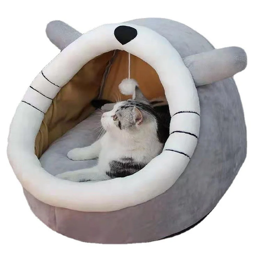 Зимняя кошачья будка полузакрытая для собак и кошек Всесезонная Удобная бархатная осенне-зимняя плюшевая кошачья кровать для домашних животных