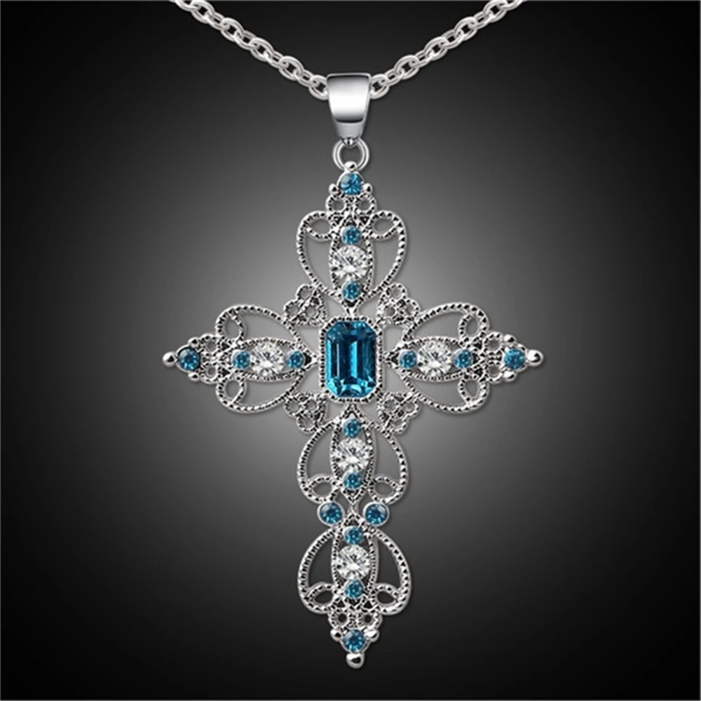 Большая детализированная подвеска в виде креста, украшение, ожерелье серебряного цвета в готическом стиле, модная подвеска, эффектный подарок для женщин