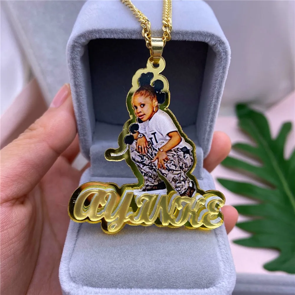 Фото с именем на заказ, ожерелье для детей, персонализированное акриловое ожерелье с подвеской, ювелирные изделия с памятью на заказ для женщин, рождественский подарок