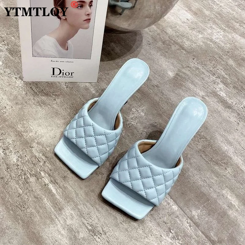 Шлепанцы женские на тонком каблуке, сандалии без задника с квадратным носком, пляжные шлепанцы для отдыха, шлепанцы на платформе, желтые белые, лето